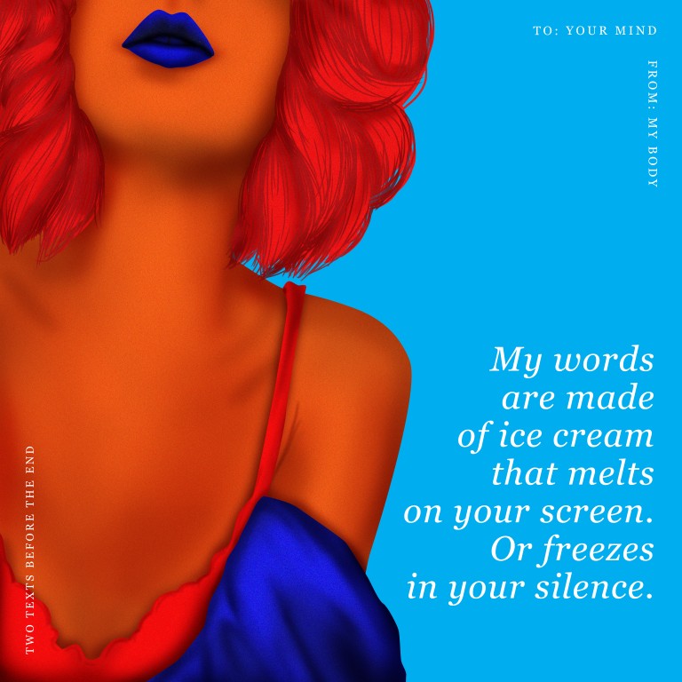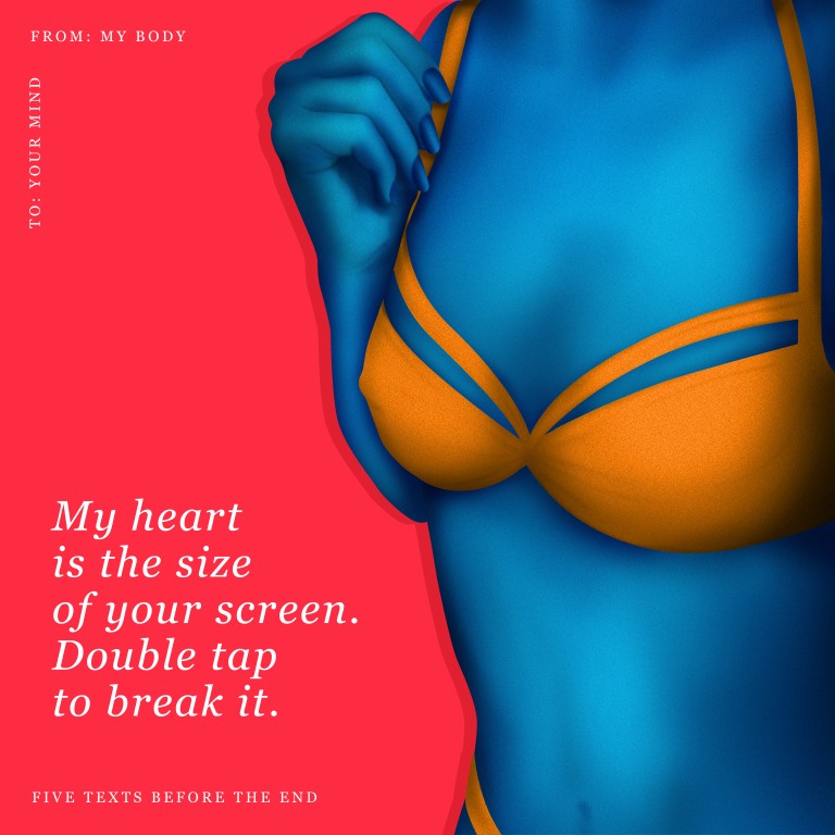 #mymindhasnocharacterlimit is an e-love story in ten texts. One that shows how desperately we try to connect online, hoping that attraction can shatter the screens between us and take it offline.