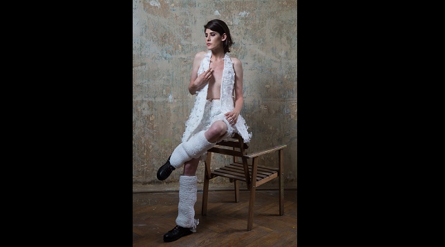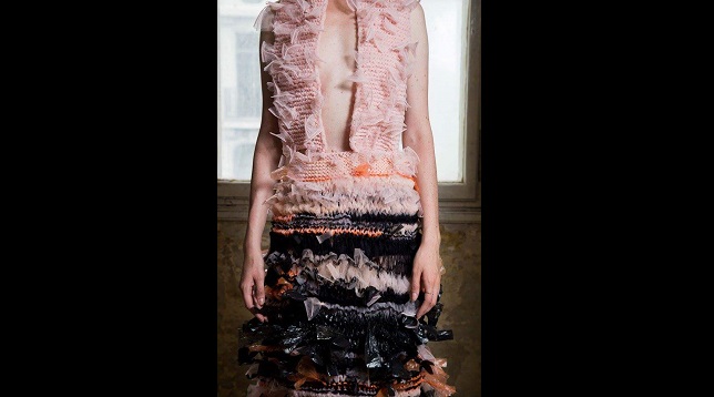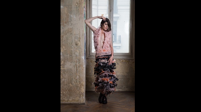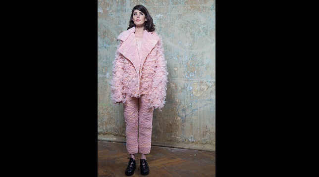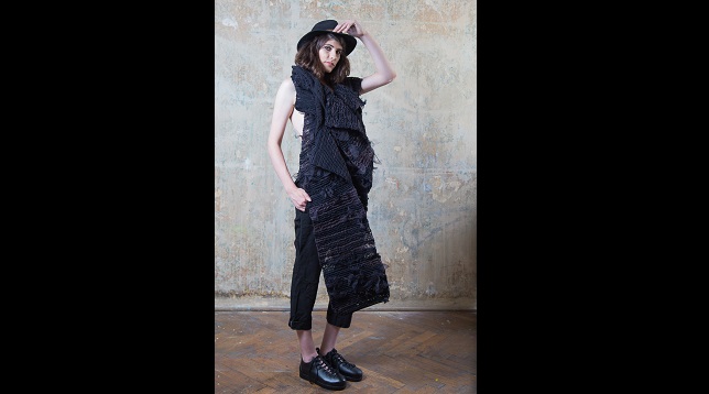 Bianca Muntean și Nicoleta Tudor au absolvit secția de Modă a Facultății de Arte Decorative și Design din București și împreună au realizat colecția de licență numită Milliers Yeux, realizată manual din tul sintetic și saci menajeri croșetați.
