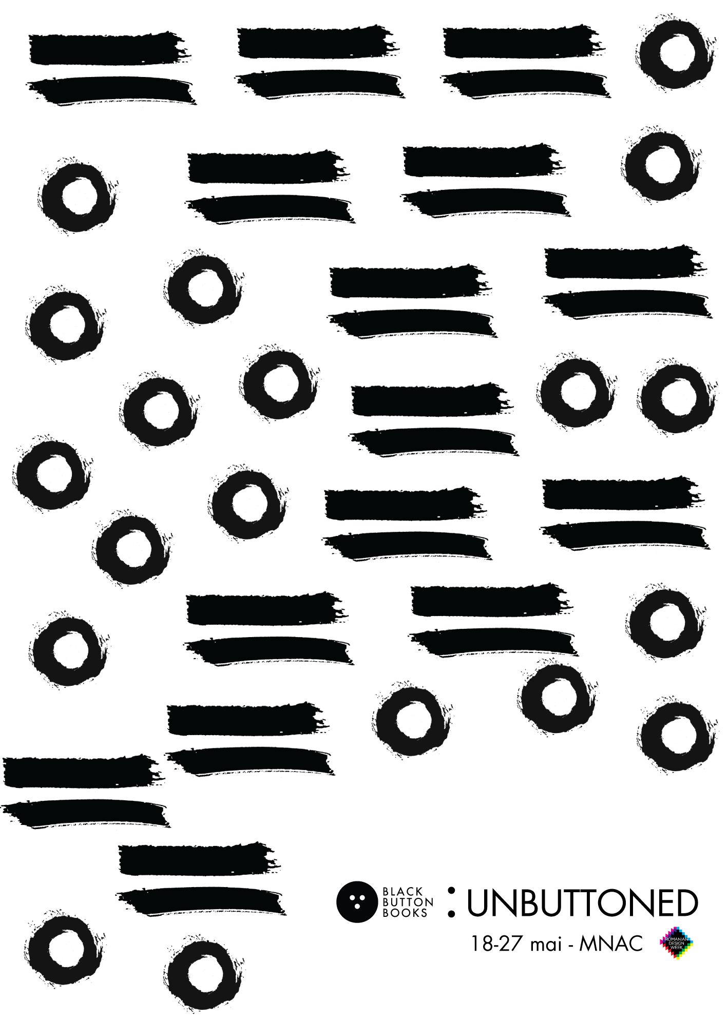 UNBUTTONED își propune să destructureze construirea conceptului editorial Black Button, urmând traseul cărții de la autor, idee, corespondență, traducere, redactare, design/ layout interior și copertă, tipar până la obiect. Printr-un mix de print și multimedia, vizitatorii vor putea parcurge acest traseu atent cartografiat de la concept, până la lectură.