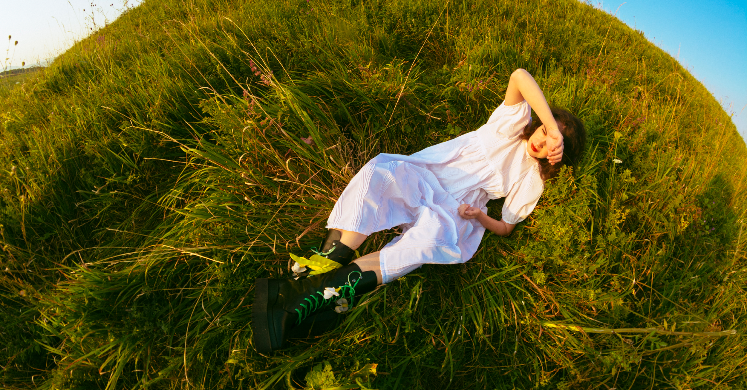 Personajele lui Ștefan Câlția, fie ele cu picioarele pe pământ, ori plutind cu oasele goale, fac parte dintr-o specie numită de către acesta Călători. Așadar, poate că nu este întâmplătoare această colaborare cu un designer care s-a remarcat în primul rând prin colecții destinate mersului. Plante indigene cu nume care încă scapă unui limbaj formal ca cicoarea, cârciumăresele, gălbenelele sau coada șoricelului se încolăcesc brodat pe gleznele creațiilor realizate în cunoscutul stil deconstructivist, definit de calitatea materialelor și a execuției care au consacrat-o pe Mihaela Glăvan. Autoarea nu ratează să integreze nici semnătura formală a artistului, peștele, care apare supradimensionat pe o borsetă cu portabilitate multiplă, sau deconstruit pe vârful unei perechi de cizme. Aceste tipare preluate identic, asemeni unui colaj, sunt tratate de la caz la caz, fie ca integrante, fie contrastant prin jocul cu scara și paleta cromatică.