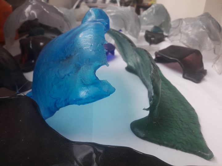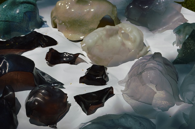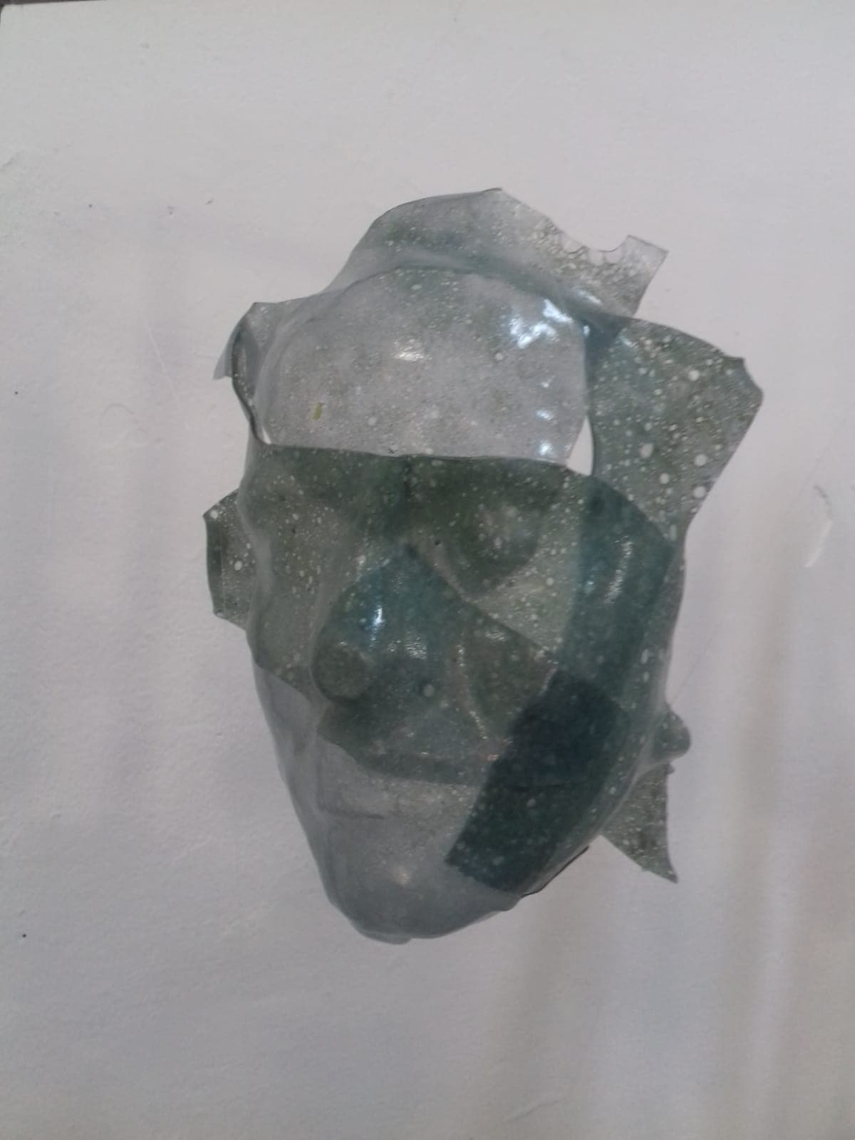 Lucrarea ''Momente'' este un ansamblu compus din măști create cu ajutorul diferitelor tehnici ale artei sticlei.