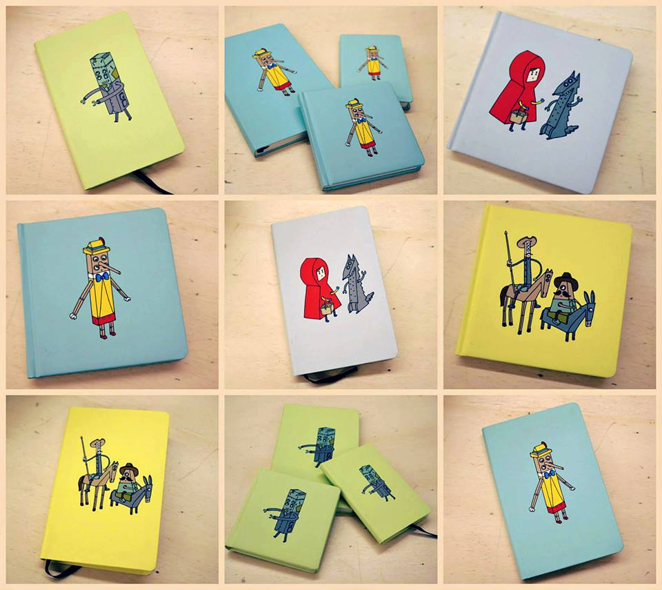This new series of Cărturești bookbags and notebooks is a meeting point for Pinocchio, Don Quijote, Little Red Riding Hood and other characters rendered in the unique style of Ghica Popa, a blend of humour and robotics. The collection’s goal was to show a new perspective on famous literary characters and to bring them closer to the readers by printing them on everyday objects.