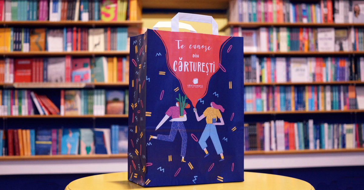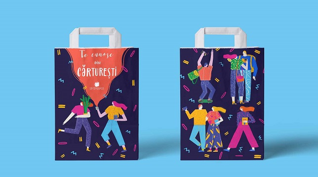 The shopping bag I KNOW YOU FROM CĂRTUREȘTI marks a new collaboration between Cărturești and designer and illustrator Kadna. The purpose of the project was to transform an ordinary item of the shopping experience into an easily recognizable landmark for those who are part of the Cărturești community. The bag is covered with different characters from Cărturești pictured in vibrant colors and fresh patterns.