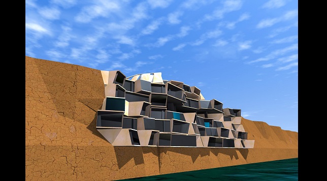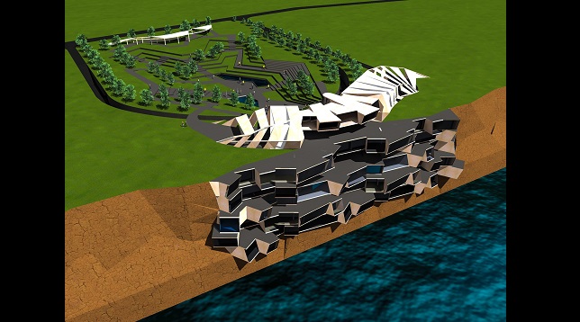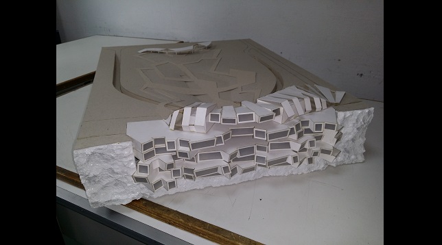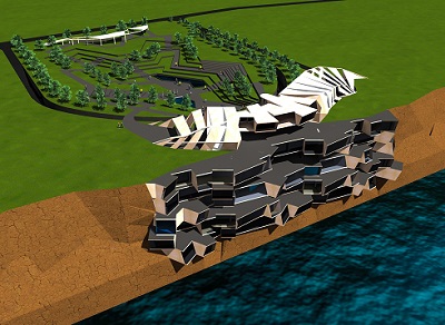 Clădirea propusă la diplomă este un hotel localizat în Bulgaria, Cap Kaliakra, amplasat pe peretele vertical al malului cu acces de pe teren (+/-0.00). Elementul principal de inspirație pentru volum a fost peretele de calcar, după care s-a încercat reproducerea straturilor erodate cu forme sinuoase și introducerea lor în acest proiect.