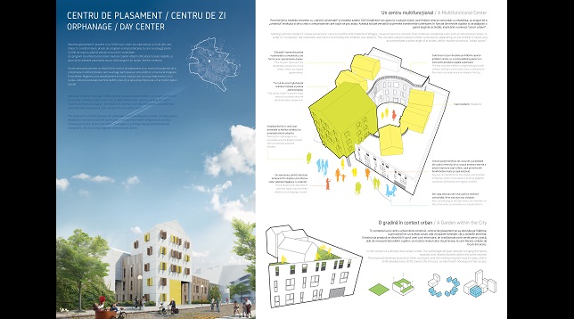 Construcția propusă se dezvoltă în jurul unei curți interioare, iar tradiționala zonă verde pentru joacă se mută la nivelul celor două terase, la care fiecare modul familial are acces. Acest program hibrid este dedicat copiilor orfani/abandonați, celor defavorizați și celor cu părinții plecați la muncă în străinătate.