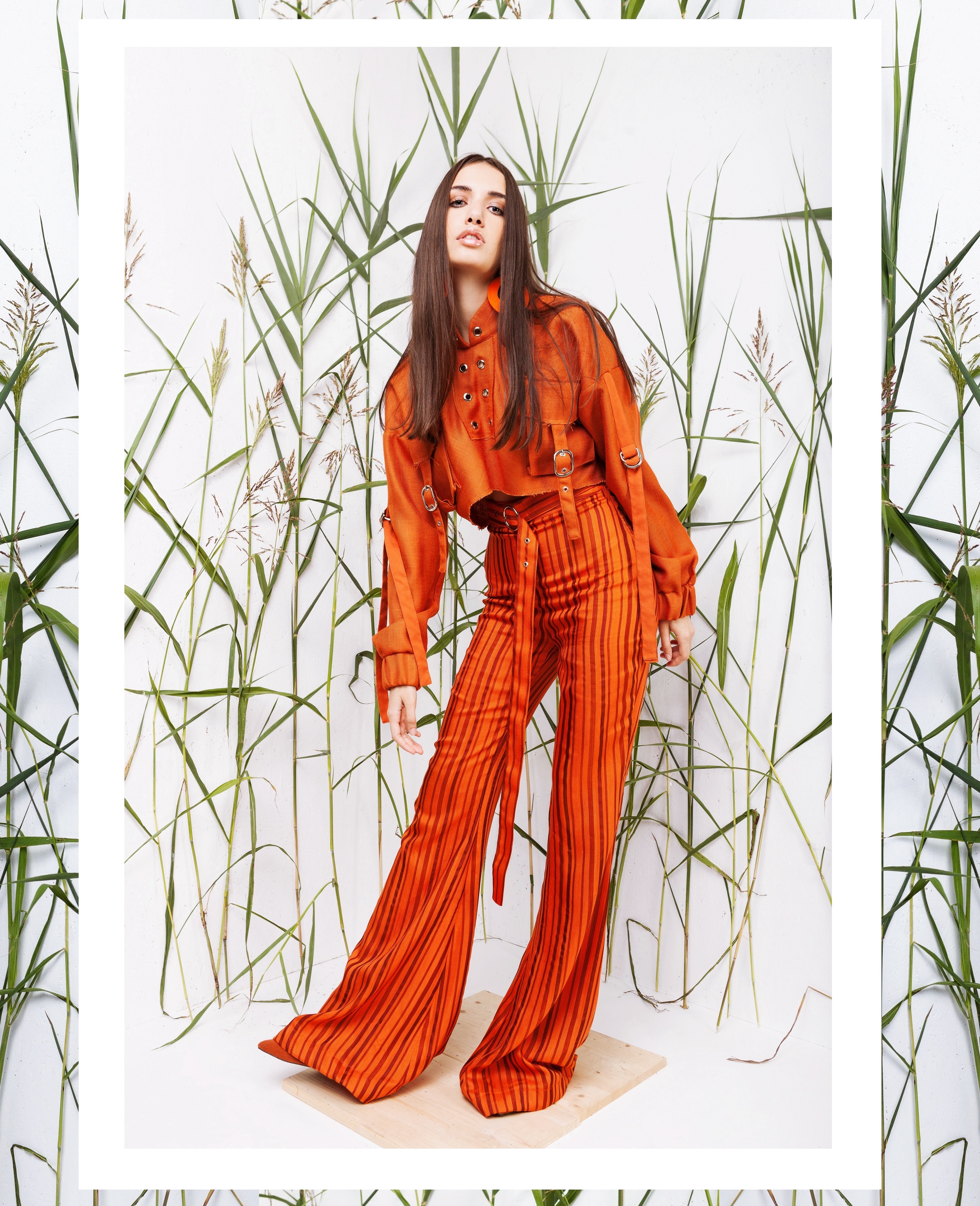 Colecţia THE ARISEN este compusă din opt ţinute pentru femei pentru toamnă-iarnă. Fiecare ţinută este alcătuită din minimum doua piese, majoritatea fiind monocrome, preponderent orange, albastru şi kaki, cu excepţia ţinutei centrale, care este în totalitate albă şi reprezintă originea ideii întregii colecţii. Accesoriile sunt realizate la comandă, din material Plexiglas, pe baza modelelor creatie proprie.