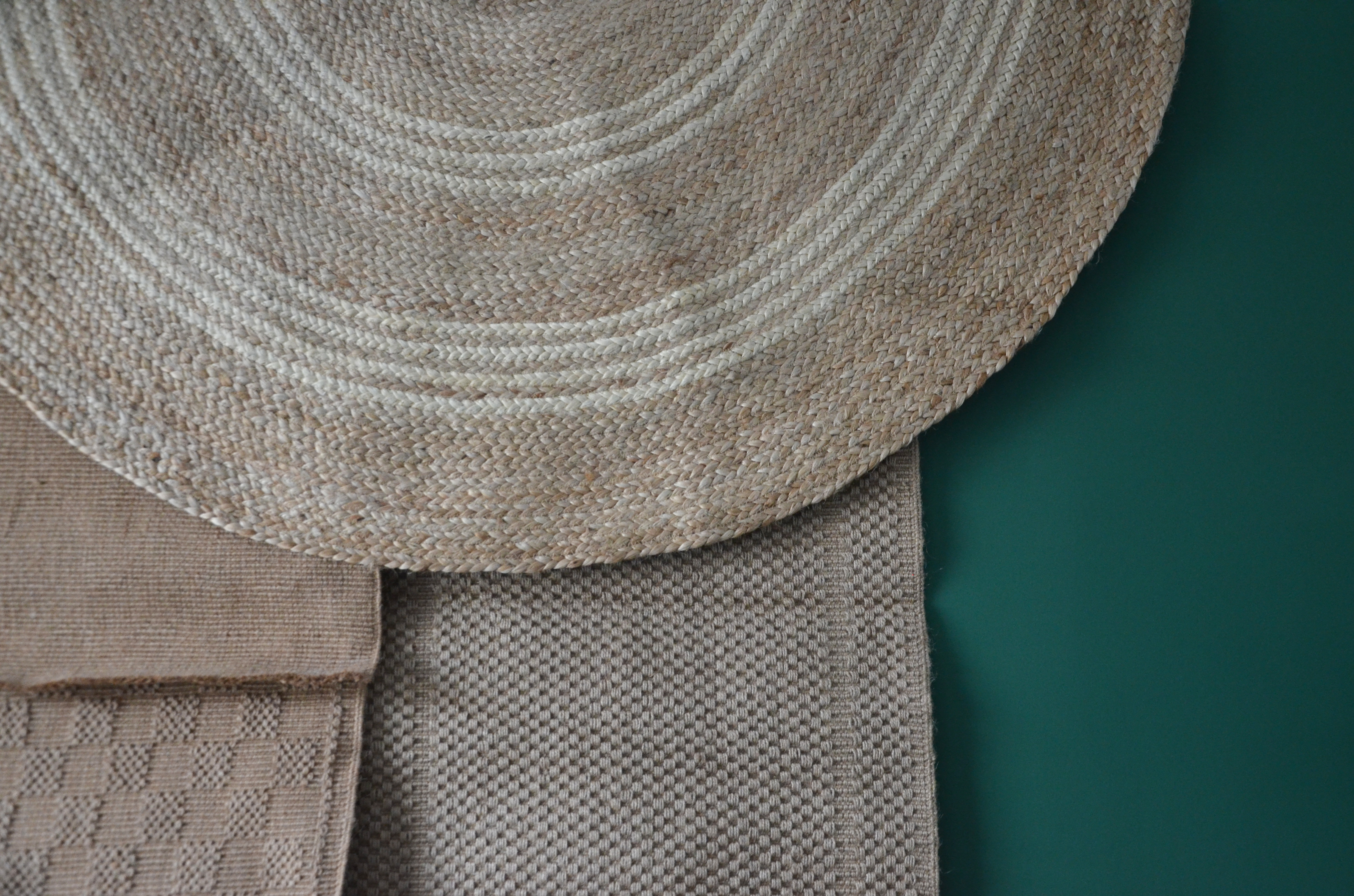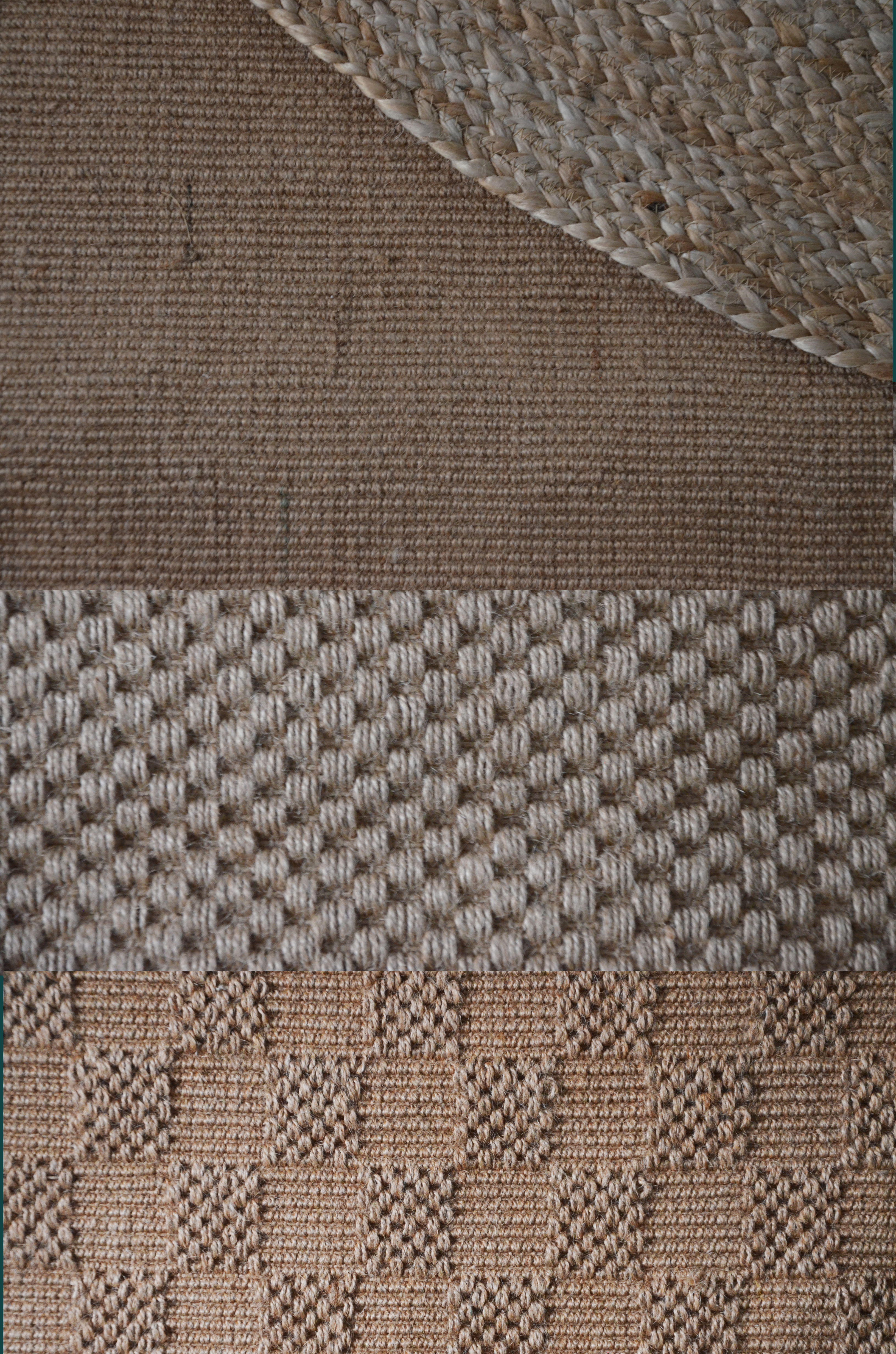 The "Teluric" carpet made by Co Laboratory is a search for natural, local and authentic elements. With the Teluric Carpet Collection, Co Laboratory proposes a contemporary approach to this natural, affordable, easy-to-use, but ignored fabric in design. Jute is grown for fiber obtained from the plant stem and is used for making ropes or a sack cloth.