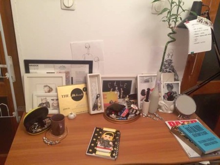 Dintre toate locațiile la care am lucrat, cel mai semnificativ de până acum a fost camera mea din Cluj. O cameră mică cu pereții albi și puțină mobilă, făcând parte din căminele studentești ale Universității de Artă și Design. Îl consideram un mini atelier, cum făceau și restul studenților de acolo. Aici lucram la concept, aici îmi adunam inspirațiile. Pentru tipare și cusut, mă duceam la Fabrica de Pensule. Atelierul meu era mereu printre multe alte ateliere, printre multi alți oameni creativi.