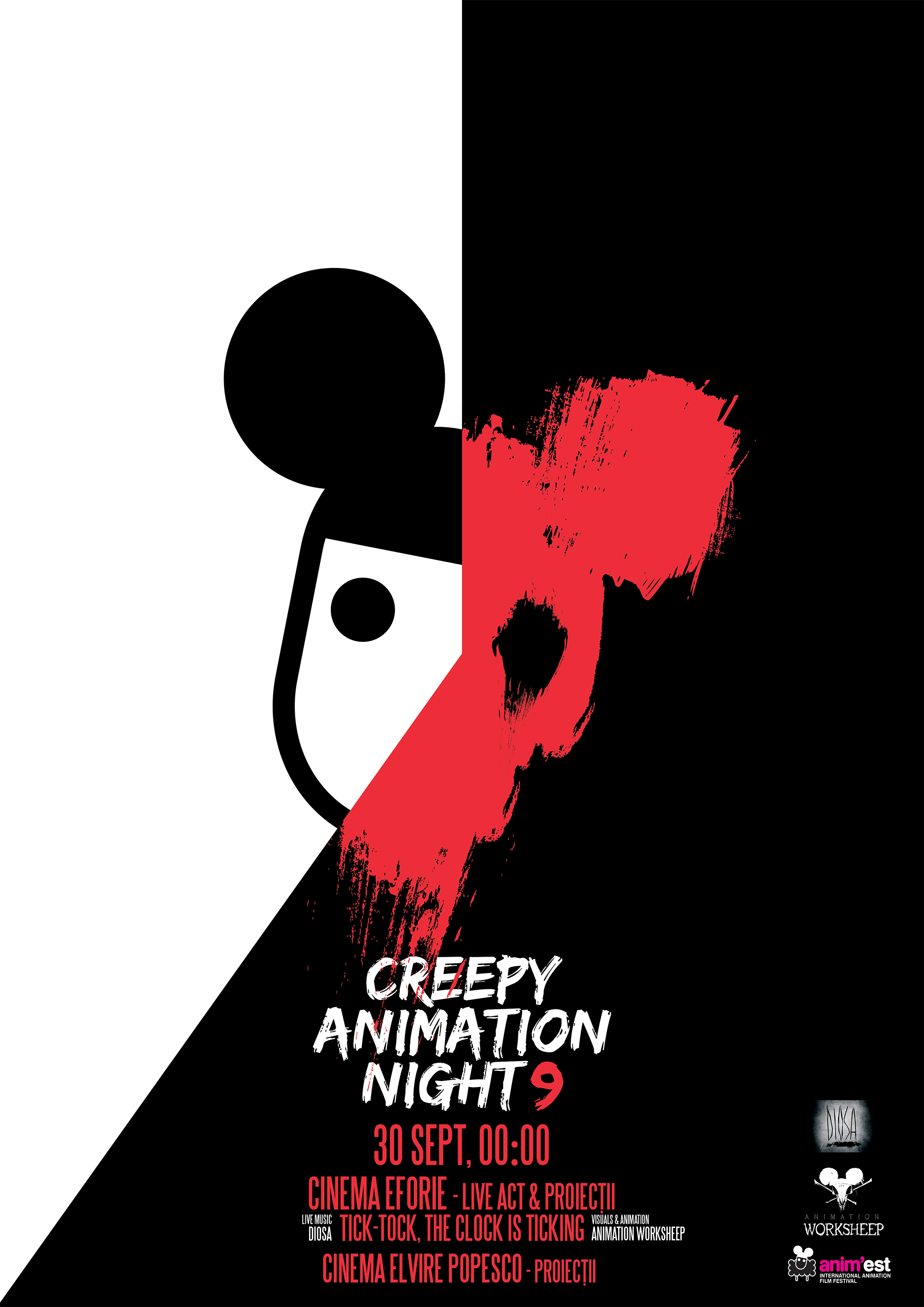 Unul dintre cele mai de succes evenimente din agenda Anim’est, Creepy Animation Night, ajunge anul acesta la a 9-a ediție și pregătește un program special. Selecția de filme ce oferă publicului acces la cea mai întunecată latură a animației va fi precedată de un performance semnat DIOSA, un proiect unic în peisajul autohton, inițiat de compozitoarea și dirijoarea Simona Strungaru. E vorba despre un concept muzical complex, care îmbină muzica clasică prin elemente de orchestrație complexă cu procedee componistice specifice diverselor perioade din istoria muzicii și elemente de muzică electronică actuală. Din proiect fac parte Simona Strungaru (dirijor, pian), Gabriela Petecilă (flaut), Bogdan Gugu (clarinet), Iulian Nițică (contrafagot), Sebastian Burneci (trompetă), Cristian Lăbuș (trombon bas) și Natalia Pancec (vioară). Proiectul lansat în cadrul Creepy Animation Night va fi însoțit de vizualurile realizate la cea mai recentă ediție a atelierului intensiv de animație Animation Worksheep, organizat de Anim’est, și va avea ca tematică ideea de sfârșitul zilei și al timpului, la miezul nopții, când se trezesc la viață creaturi bizare și se dezlănțuie evenimente neașteptate, înspăimântătoare. Sfârșitul performance-ului va fi marcat de o prestație artistică a coregrafului, actorului și dansatorului Paul Cosma-Cimpoieru, inspirată de aceeași temă a luptei cu timpul. Responsabil de lookul artiștilor pe scenă va fi Salonul FASON by Cristina Grama, alături de Alexandra Grama, Christina Oné Photography și Maria Radu Makeup Artist.