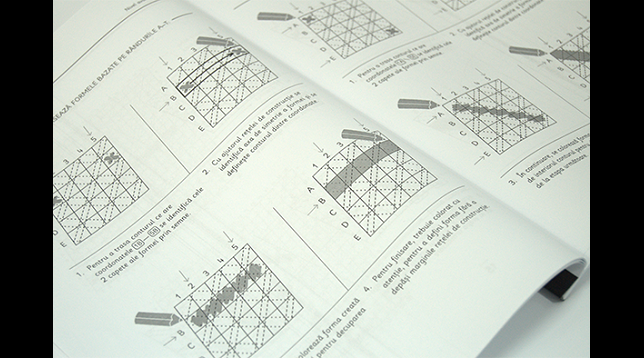 Încercând să aplice multitudinea noțiunilor aflate proiectului, studenta a dezvoltat un sistem structurat prin care mai multe clase de elevi, de vârste diferite se pot implica în crearea identității. Fiecare activitate destinată copiilor se realizează în funcție de gradul ei de dificultate. În primul rând, pentru realizarea pictogramelor care vor fi amplasate în instituțiile școlare se vor realiza o serie de pași precum: trasarea grid-ului de bază pentru toate pictogramele, desenarea acestora, decuparea acestora și amplasarea lor pe pereți.