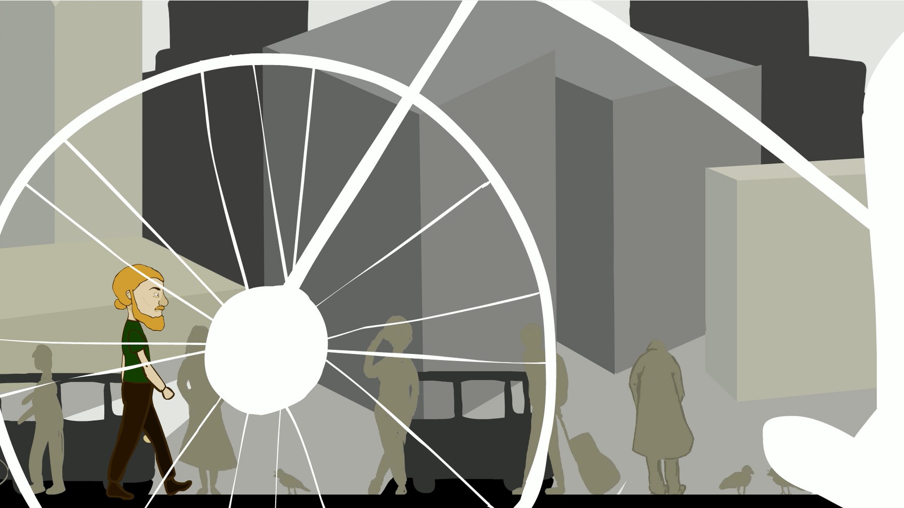 Finalul este unul surprinzător: în timp ce personajul principal stă întins pe iarbă, cadrul se distanțează de acesta și oferă privitorului șansa de a privi dintr-o altă perspectivă: aflăm că de fapt el este într-un mic spațiu verde din centrul unei metropole imense.