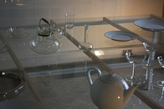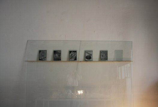 Borrowed copies of black and white negatives of Josef Sudek´s work from the archives of the Institute of Art History Academy of Sciences of the Czech Republic are the primary basis for the installation made by Ondřej Vicena, that features images that capture utilitarian objects and direct imprint of the original glass negatives of Sudek’s estate. The composition expresses speed, repeating motifs, machine production, faith into technological progress and talkes about abstract constructivist ideas of the early 20th century.