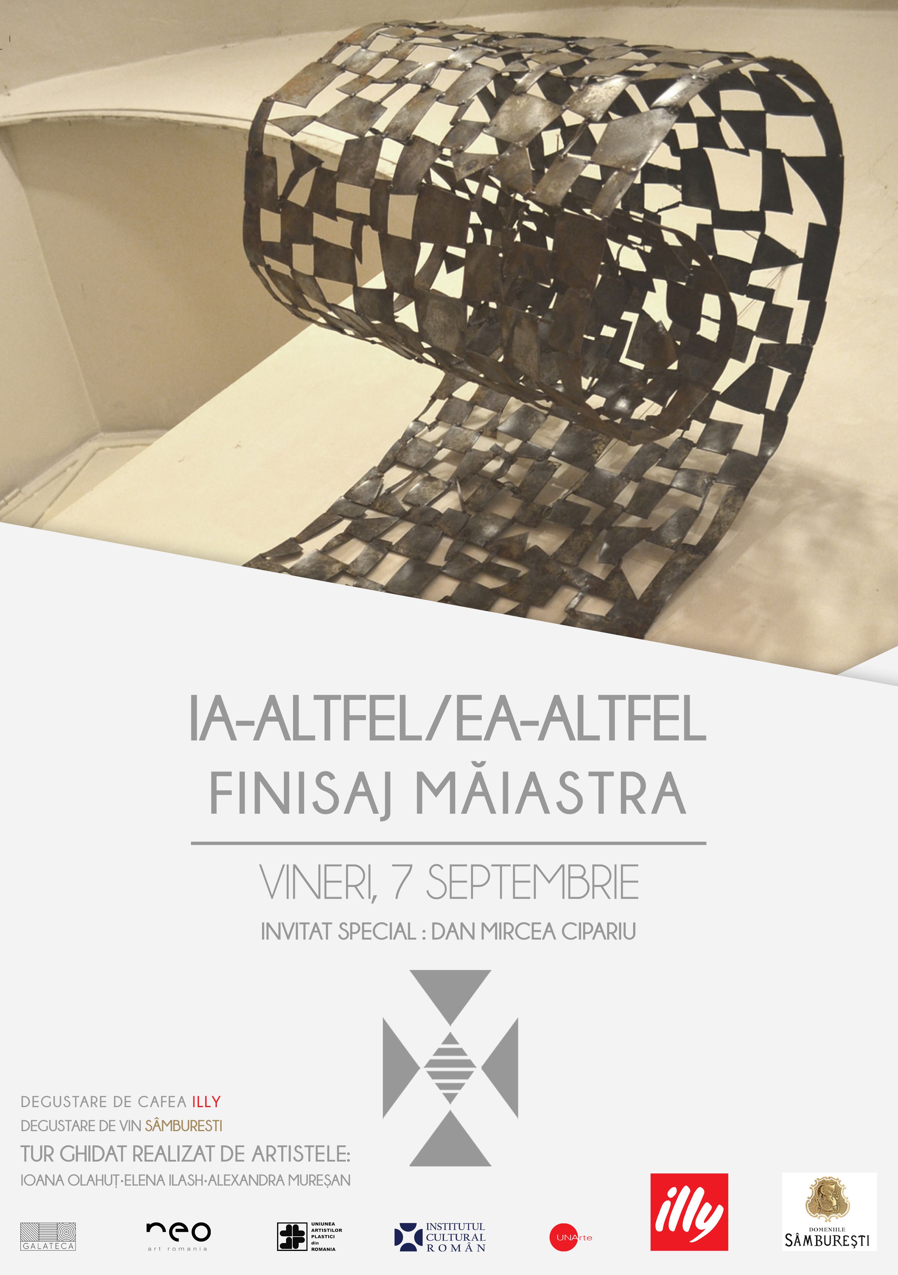 Vineri, 7 septembrie 2018, ora 19:00, la Galeria de artă contemporană Galateca din București (str. C.A. Rosetti, nr.2-4), are loc finisajul expoziției ”Măiastra. Ia-Altfel / Ea-Altfel” realizată de trei artiste din Cluj, Ioana Olahuț, Elena Ilash și Alexandra Mureșan.
