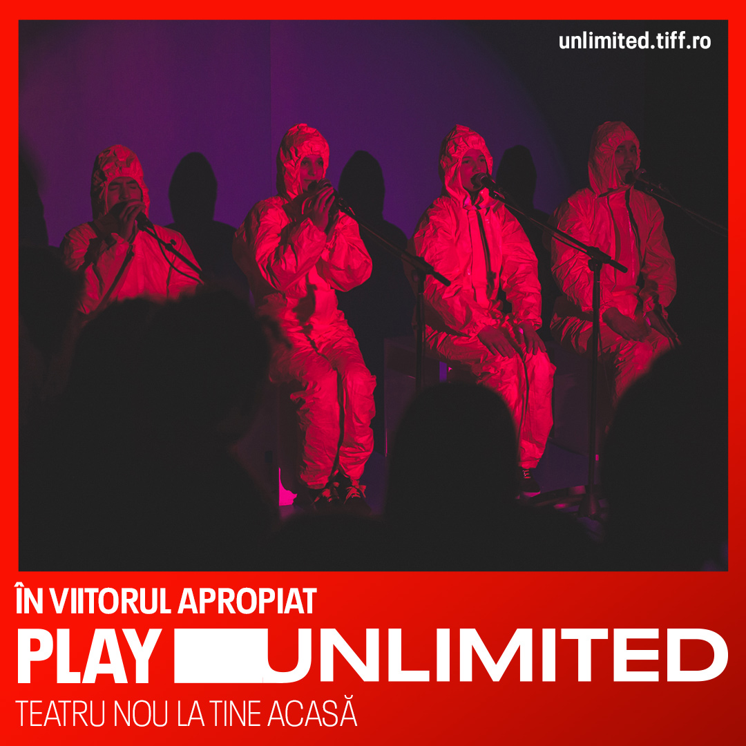 Rămâi conectat la scena independentă din România de oriunde din lume și sprijină-i pe artiștii independenți explorând, în vremuri de distanțare socială, noi moduri de „a te duce” la teatru. Un bilet la spectacolele online din seria Play Unlimited: teatru nou la tine acasă costă 30 de lei (afișat în $) și poate fi cumpărat în avans accesând fiecare titlu în parte pe unlimited.tiff.ro, cu click pe pre-order. Iată ce urmează.