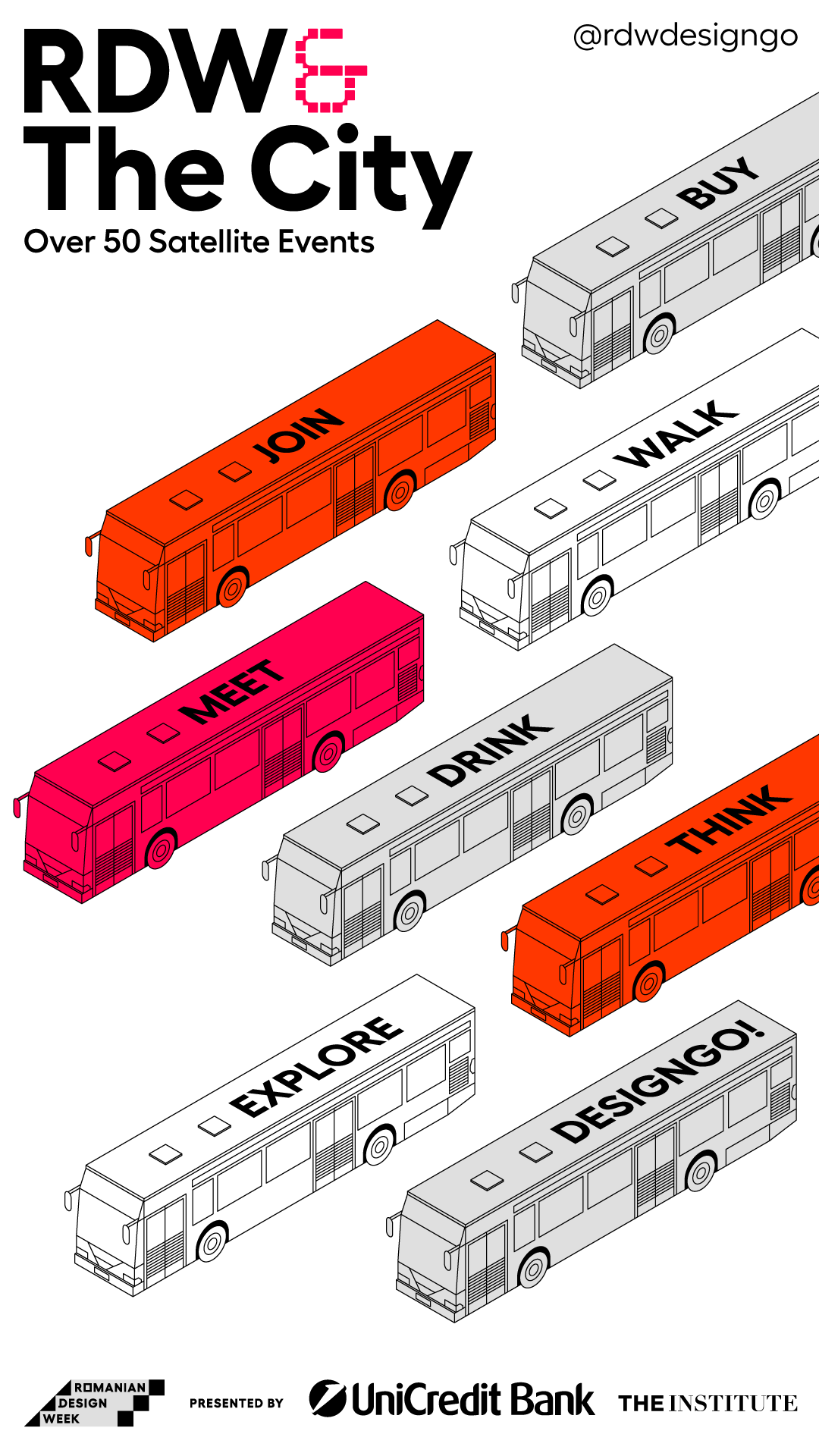 Evenimentele vor avea loc în tot Bucureștiul și invită publicul să își creeze propriile trasee prin oraș, să (re)descopere cartiere, locuri și idei și să navigheze prin harta bogată de spații recomandate de RDW. Printre recomandările pe care RDW le face publicului se numără cafenele, showroomuri, magazine și galerii care merită (re)vizitate de public: