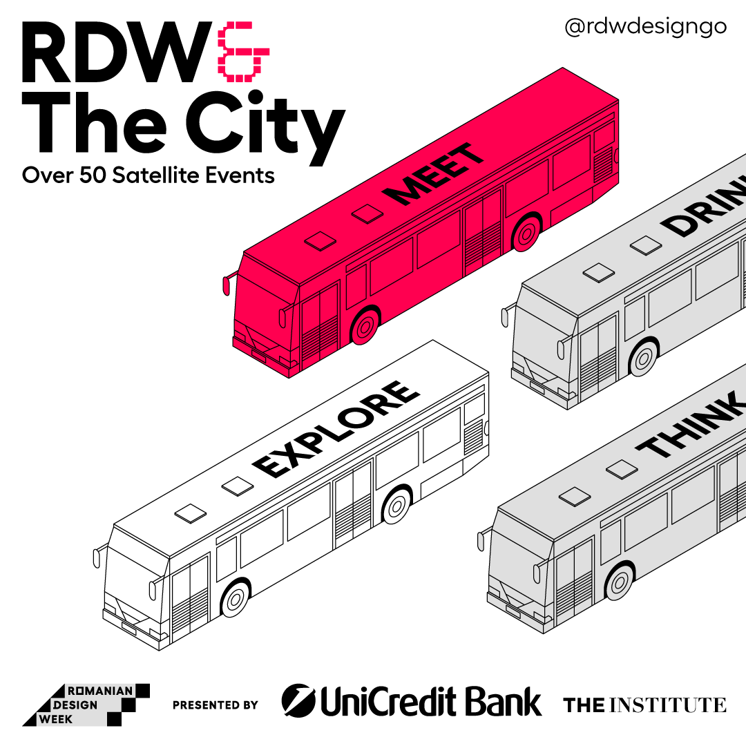 Sub tema acestei ediții de festival, TOGETHER, zeci de organizații cu ADN creativ s-au înscris în apelul pentru evenimente satelit Romanian Design Week și propun împreună un program efervescent în prima lună a verii prin care sărbătoresc designul, creativitatea și rezistența business-urilor locale într-o perioadă care a adus provocări comunității.