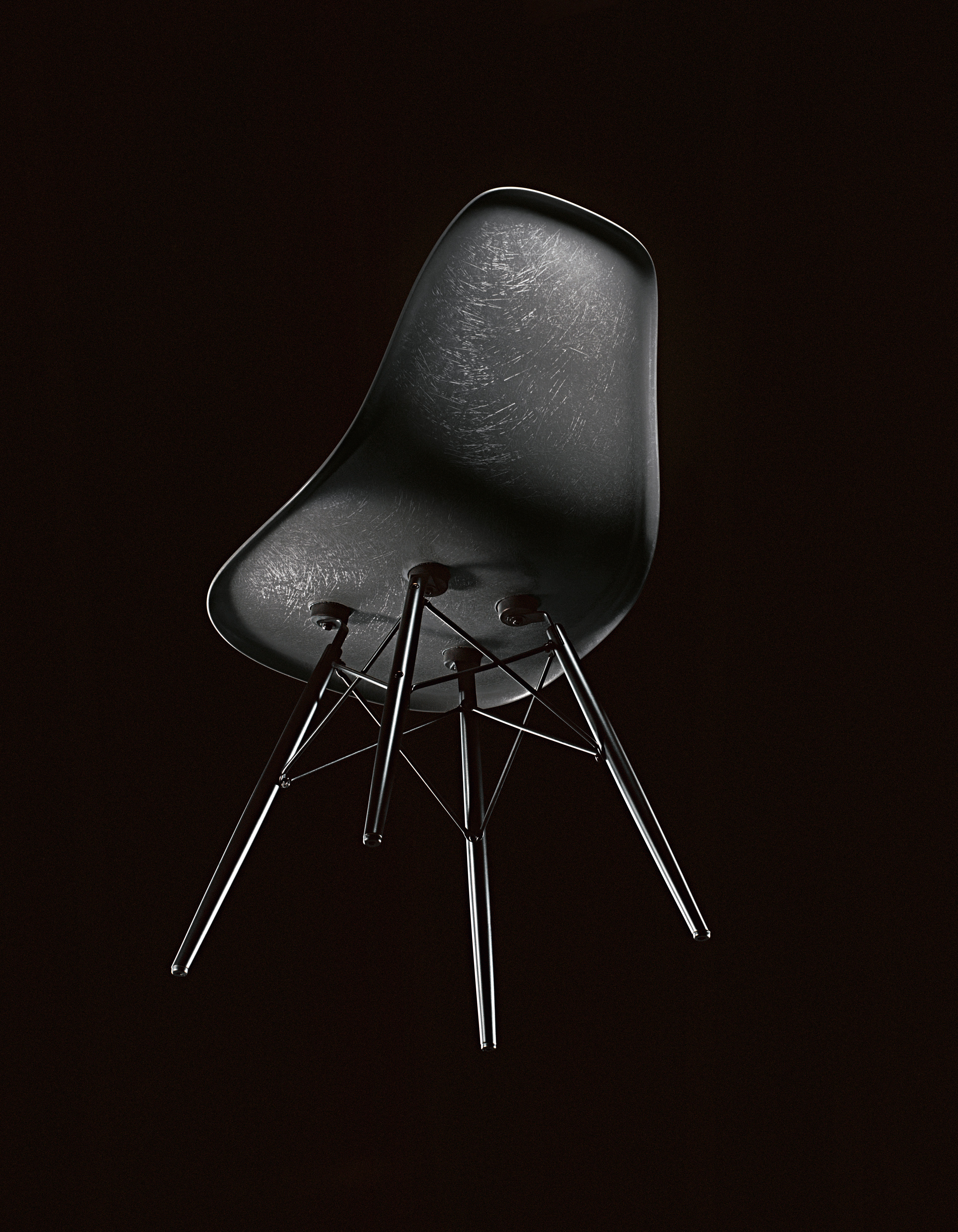 Eames Plastic Chair, care avea la bază un concept dezvoltat de Charles pentru concursul „Low-Cost Furniture”, organizat de MoMA în 1948, a făcut loc unui nou tip de material în industria designului de mobilier: plasticul, sau mai precis, poliesterul ranforsat cu fibră de sticlă. Propunerea marca, totodată, apariția unui nou tip de șezut – o „scoică” compactă care nu mai forma un tot unitar cu baza, ci putea fi combinată cu mai multe tipuri de picioare. Eames Plastic Chair a devenit primul scaun de plastic produs industrial. În deceniile care au urmat, piața a îmbrățișat din plin această familie de scaune care puteau fi integrate în absolut orice scenariu: în spațiul domestic, în birouri, cafenele, cabinete medicale, săli de așteptare, etc. Până la apariția acestui scaun, fibra de sticlă nu fusese niciodată colorată, iar Charles și Ray au dezvoltat o gamă restrânsă de culori care să se potrivească cu un număr cât mai mare de interioare de la vreme aceea. Textura neregulată a suprafeței, cu fibre vizibile, îi oferă scaunului un aer romantic și un aspect natural, autentic, pe placul