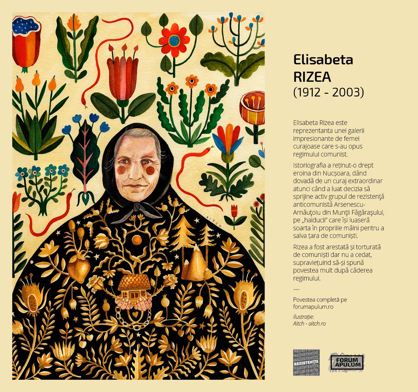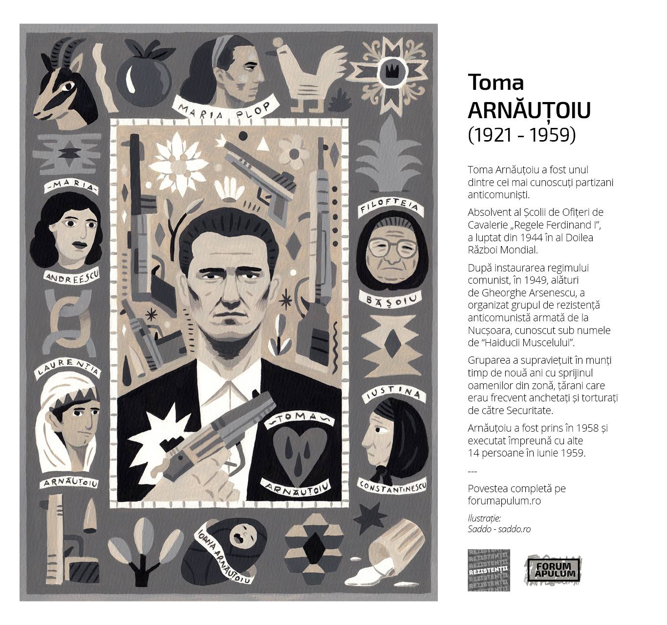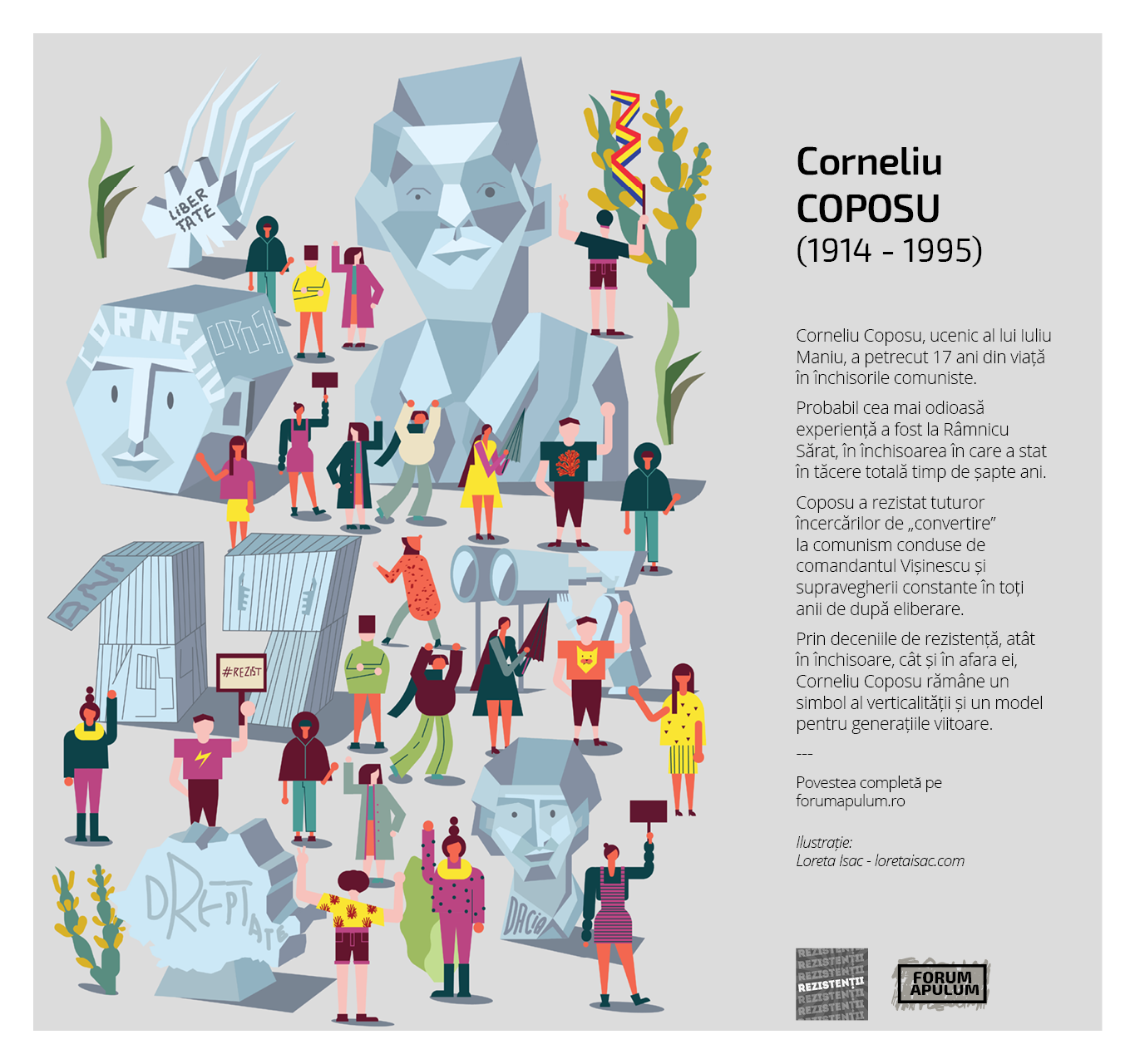 In a time when there is a need for leaders and models, the project ”The Resistance” has chosen to present a piece of history through a series of illustrations created by the Romanian artists who accompanied the stories of some people who resisted during the period of the Communist regime. The Resistance does not exist only in an extreme, aggressive form. Various people expressed their attitude against the system in different ways.