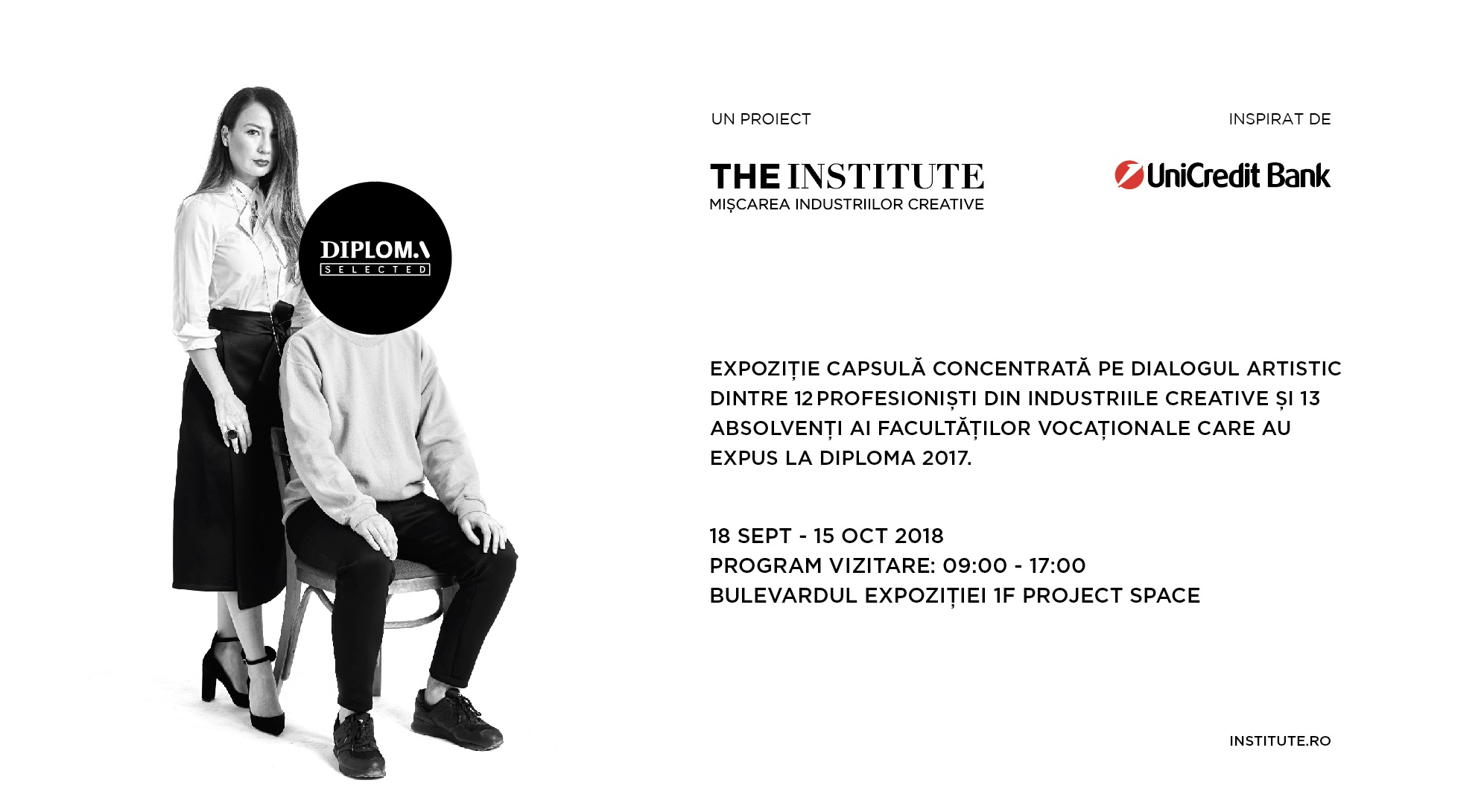 Pornind de la premisa că lucrarea de diplomă este cel mai elaborat proiect al unui student din toată perioada facultății, The Institute, cu sprijinul UniCredit Bank, aduce în atenția unui public cât mai larg, prin conceptul DIPLOMA, proiectele absolvenților, punând accent pe „împreună” și pe dialogul artistic.