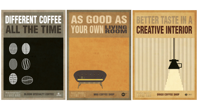 Afișele, realizate digital, încearcă să arate privitorului, printr-un element și un slogan, ceea ce are deosebit fiecare dintre cele cinci cafenele de specialitate din București, iar infograficele conțin instrucțiuni de preparare a cafelei prin metode alternative.