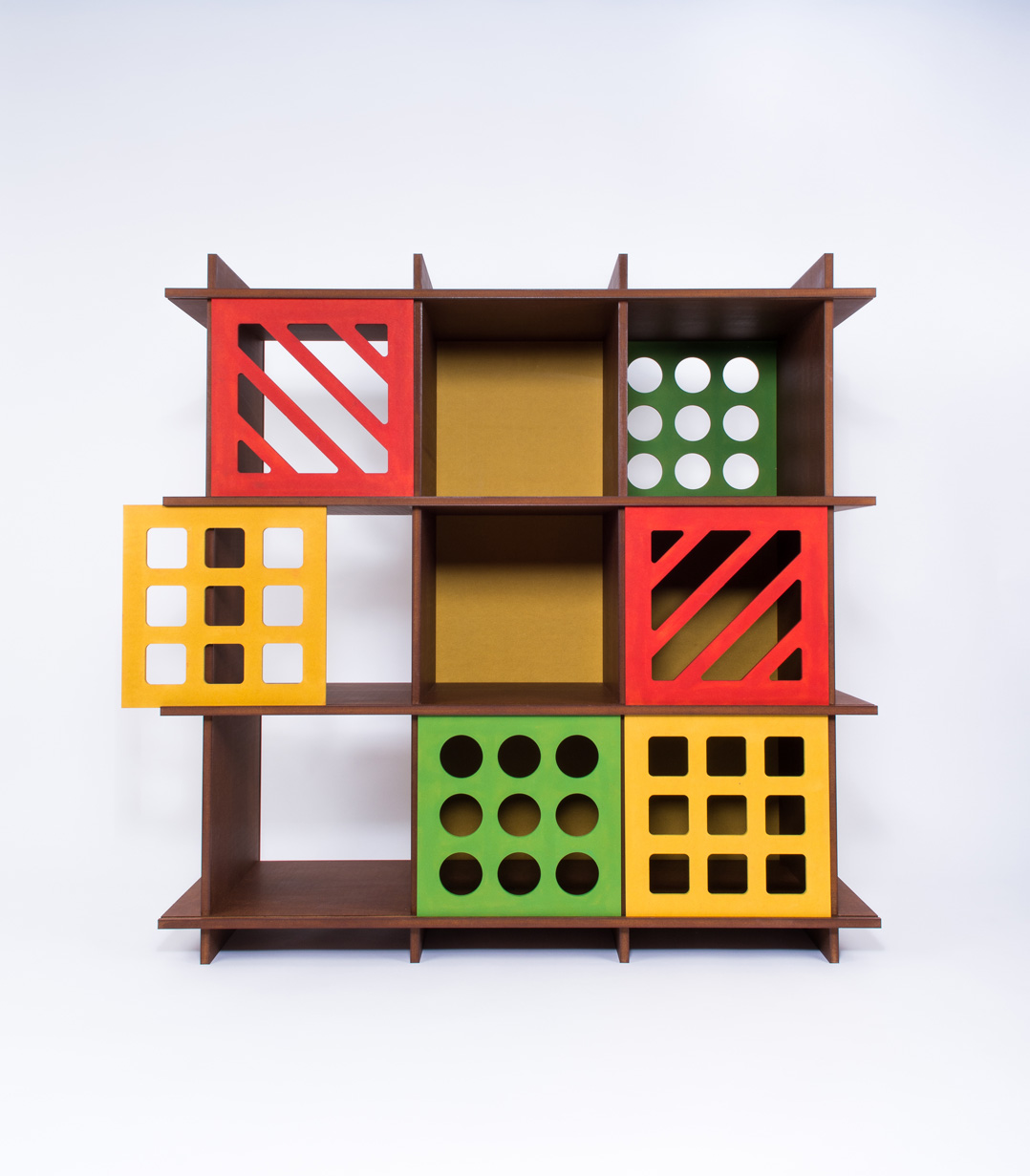 Modular, colorful, adaptable and easy to assemble. Or how you could improve a shelf system to make it multifunctional and interactive. BILLIPLAY™ is a modular shelf system with no tools assembly that even a kid could assemble. You choose the structure elements by dimensions, the geometric sliding door models and their colors. And you put it together. Or reshape it. As easy as that.