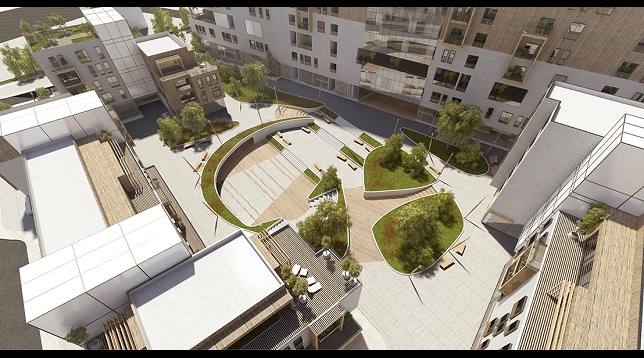 Implementarea unor zone verzi la nivelul parterului (unde locuitorii se pot relaxa și interacționa, copiii se pot juca, se pot desfășura evenimente restrânse) și realizarea acestei promenade verzi, în al doilea nivel al volumului menționat, constituie un alt element important ce se adaugă lanțului de spații verzi dezvoltat de-a lungul Bucureștiului.