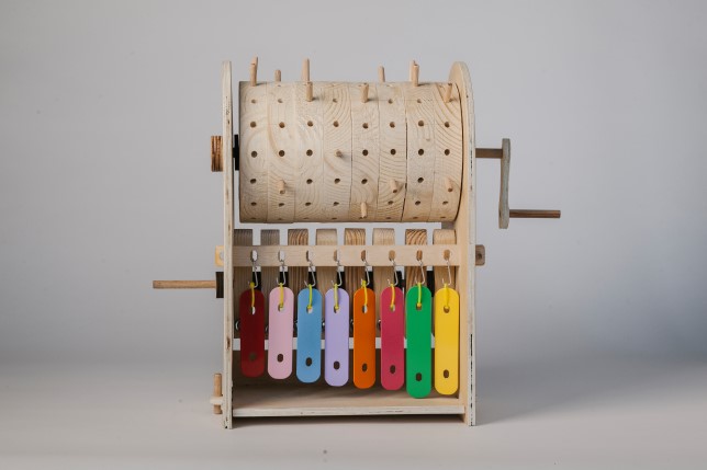 Behind this simple and fun device hides wondrous knowledge. Kids assemble the machinery to understand one of the first programming devices: depending on where they choose to place the cogs, the resulting tune may vary (this is a preview of what gave birth later to punch cards, hard-disks and the binary code).