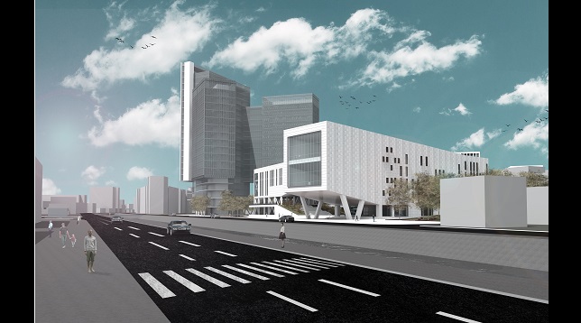 Centrul socio-cultural propune extinderea cu un nou pol a axei culturale generate de râul Dâmbovița . Proiectul ține cont de cele două elemente dominante ale zonei – râul Dambovița și centrul educațional al Universității Dimitrie Cantemir – Titu Maiorescu, alături de care se adaugă relația cu vecinătățile, amplasarea din punct de vedere cardinal și dezvoltarea unui noi traseu între Dâmbovița și Centrul de Conferințe amplasat în Bulevardul Nerva Traian.