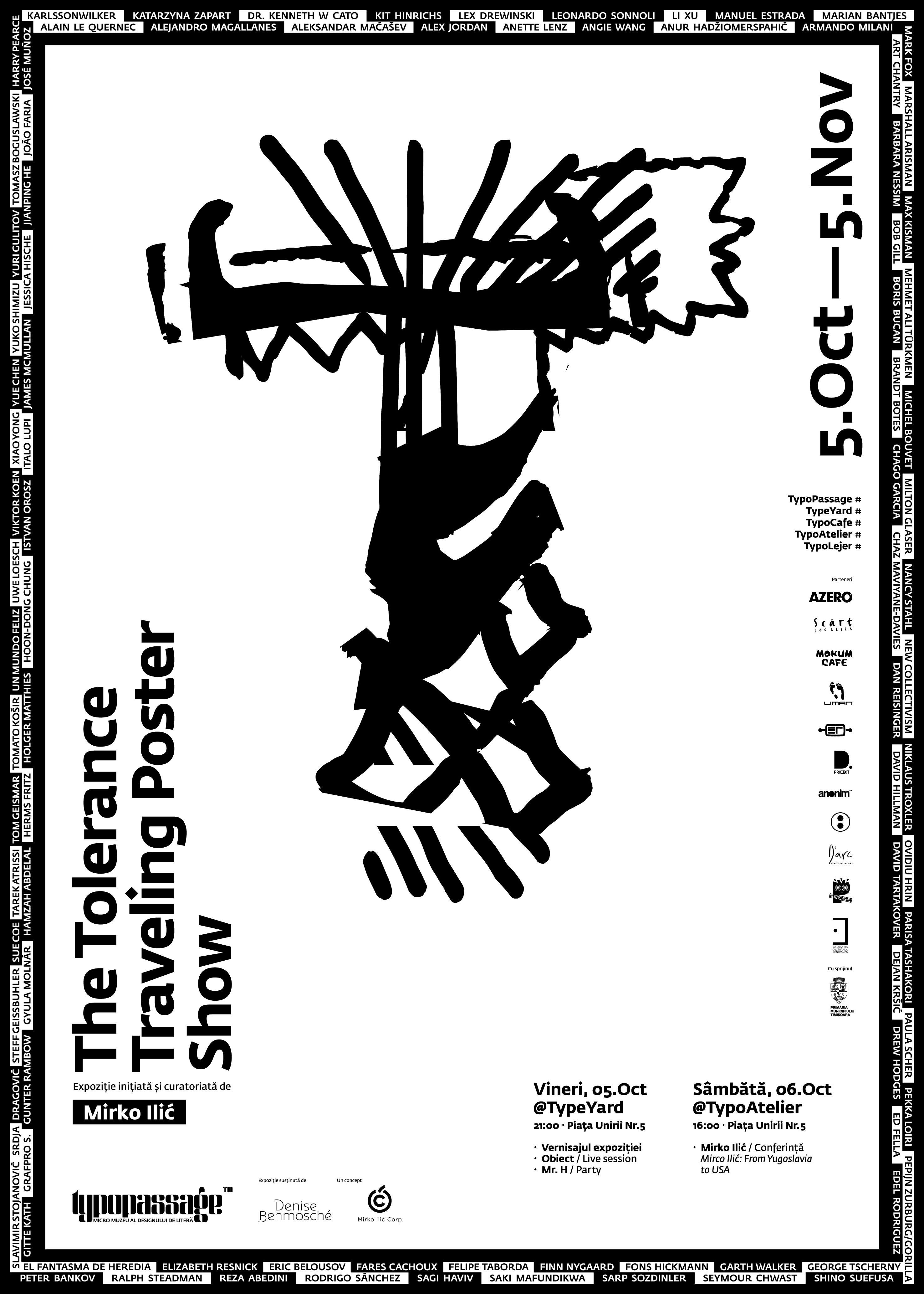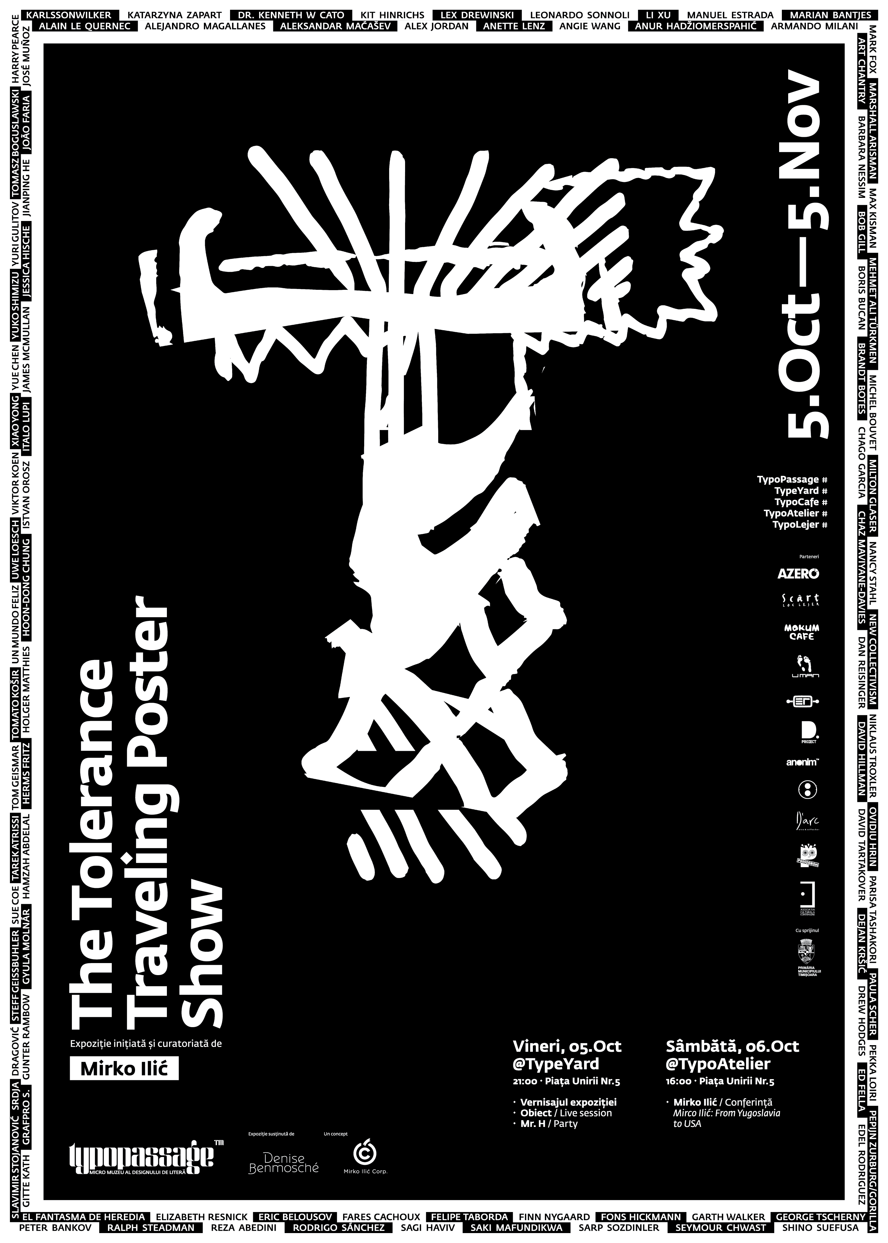 Proiectul TOLERANCE TRAVELING POSTER SHOW a fost inițiat de designerul grafic și ilustratorul newyorkez Mirko Ilić în 2017. Expoziția prezintă peste 90 de postere create de designeri și artiști consacrați de pretutindeni din lume, fiecare lucrare exprimând vizual înțelegerea toleranței în limba maternă a autorului. Colecția este prezentată în spații publice și nu în galerii de artă, deoarece scopul ei constă nu numai în expunerea lucrărilor, ci și în reunirea și conectarea vizitatorilor.