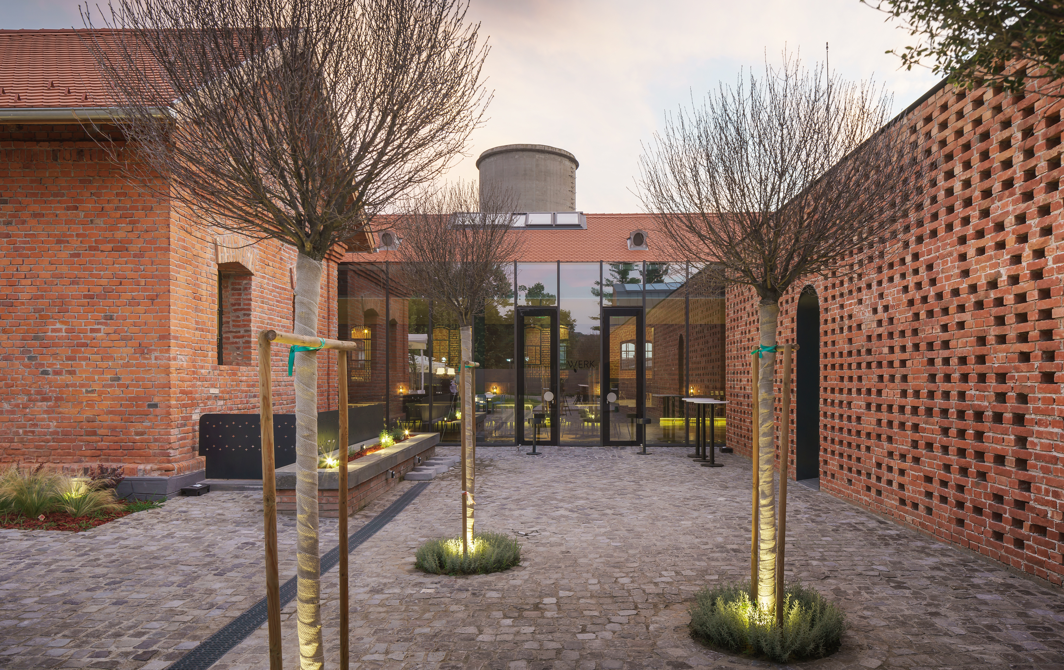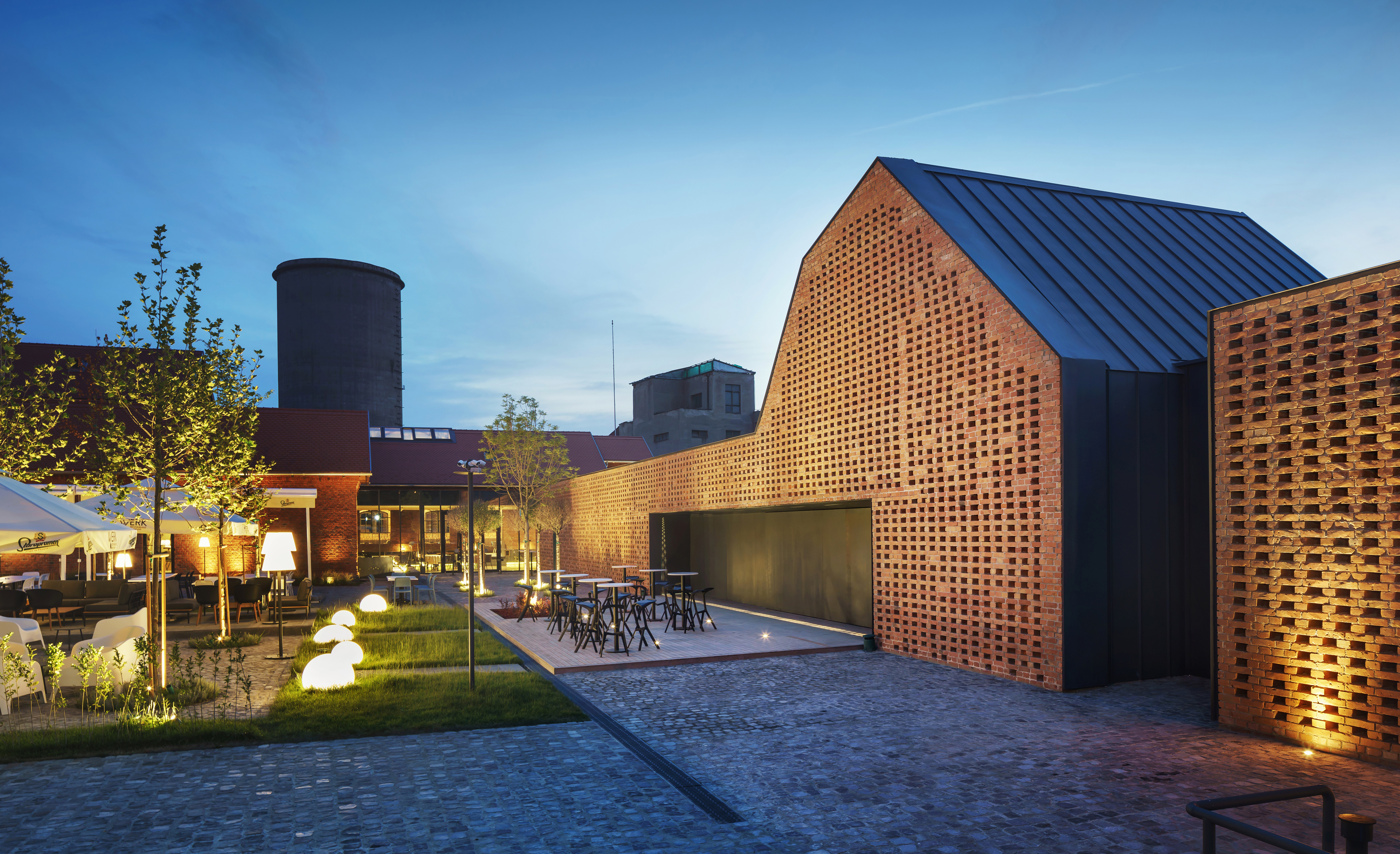 The shape, original openings and materials were restored to the original form. On the outline of the former annex we proposed a building with complementary functions. The new building maintains the spirit of the old industrial buildings with apparent brick, but in a modern manner.