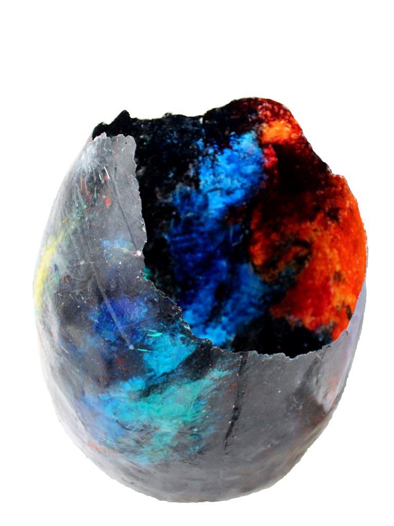 Forma de ou a fost aleasă deoarece oul adună în el atât sfera, una din formele posibile ale Universului, forma lui perfectă, cât și dinamica exploziei originare.