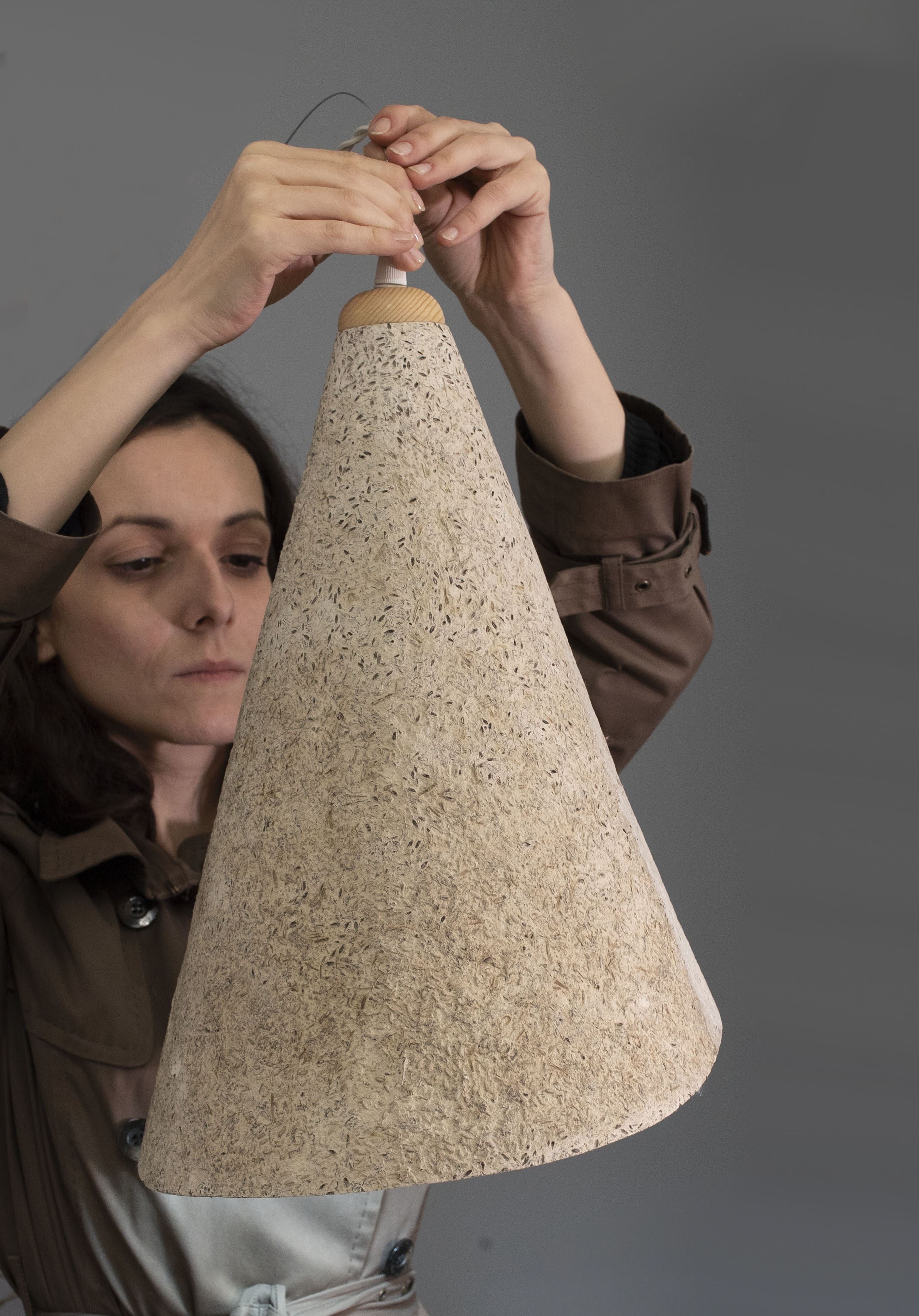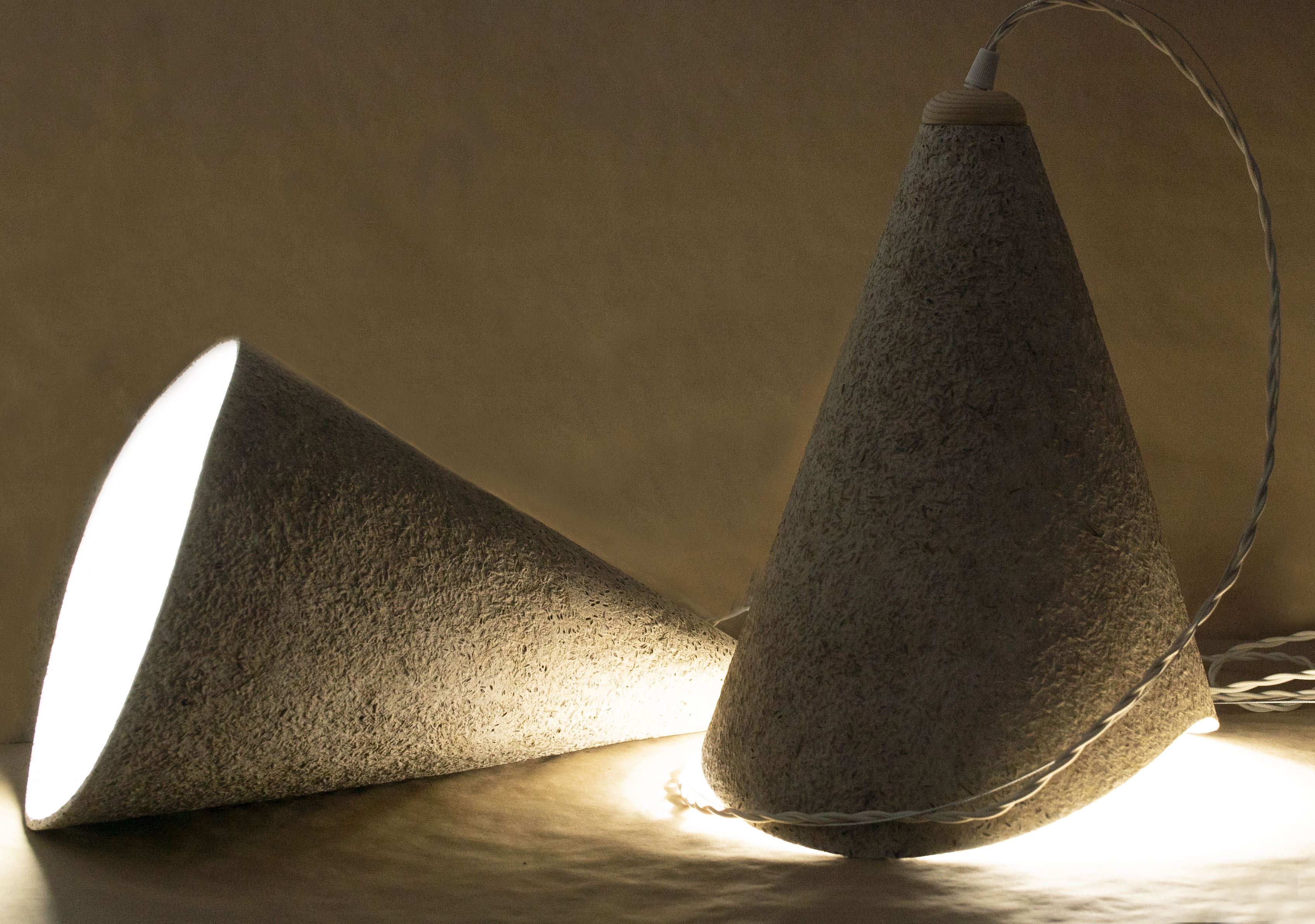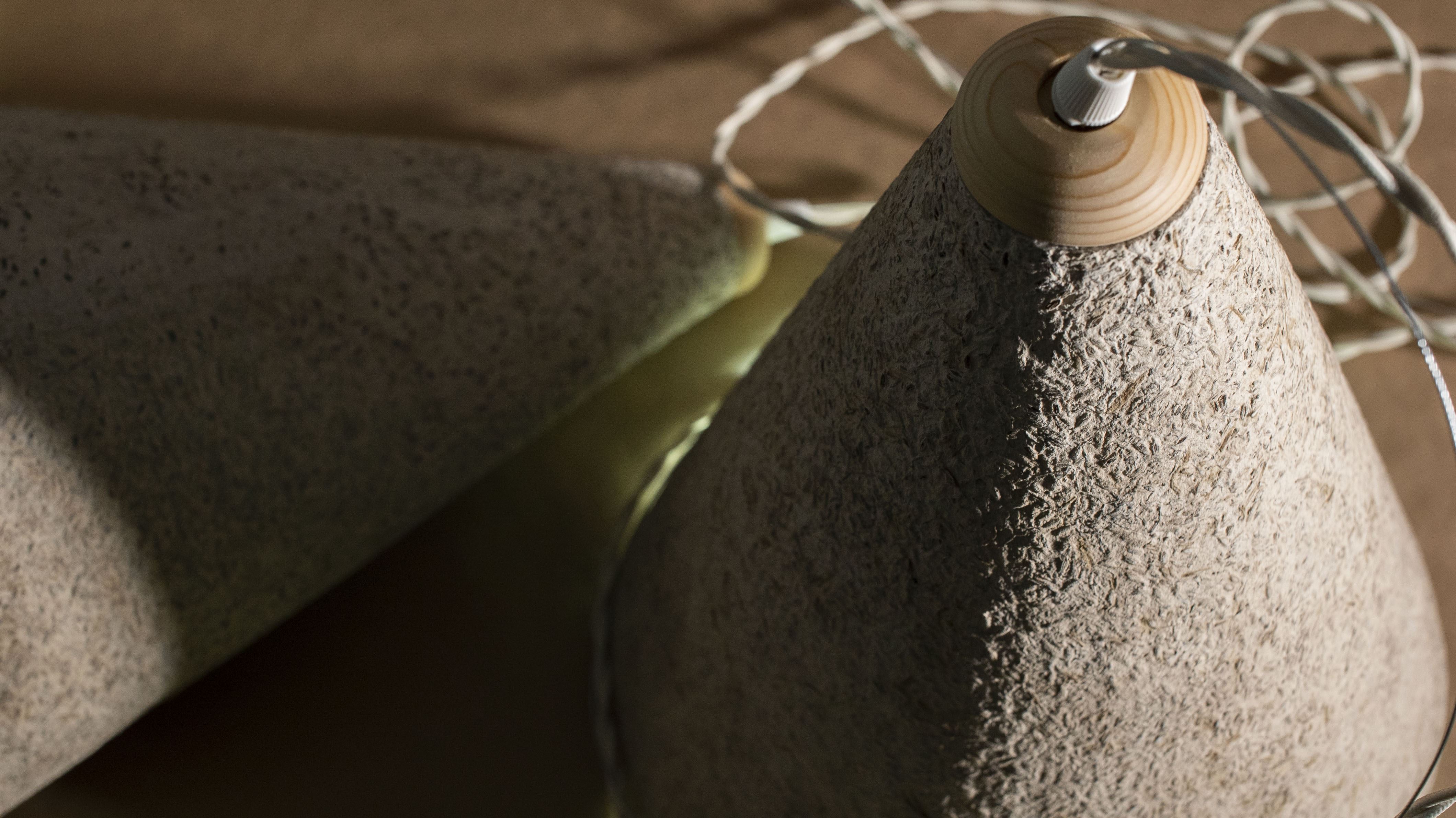 This project followed the Design Thinking methodology in order to achieve radical innovation that promotes a sales expansion in the sustainable area. It is intended to extend the concept into a mini-series of pendant lamps made of a new material that emits the emerald fragrance, the essence of the lavender flower, the natural color or even a natural texture that does not require a finishing.