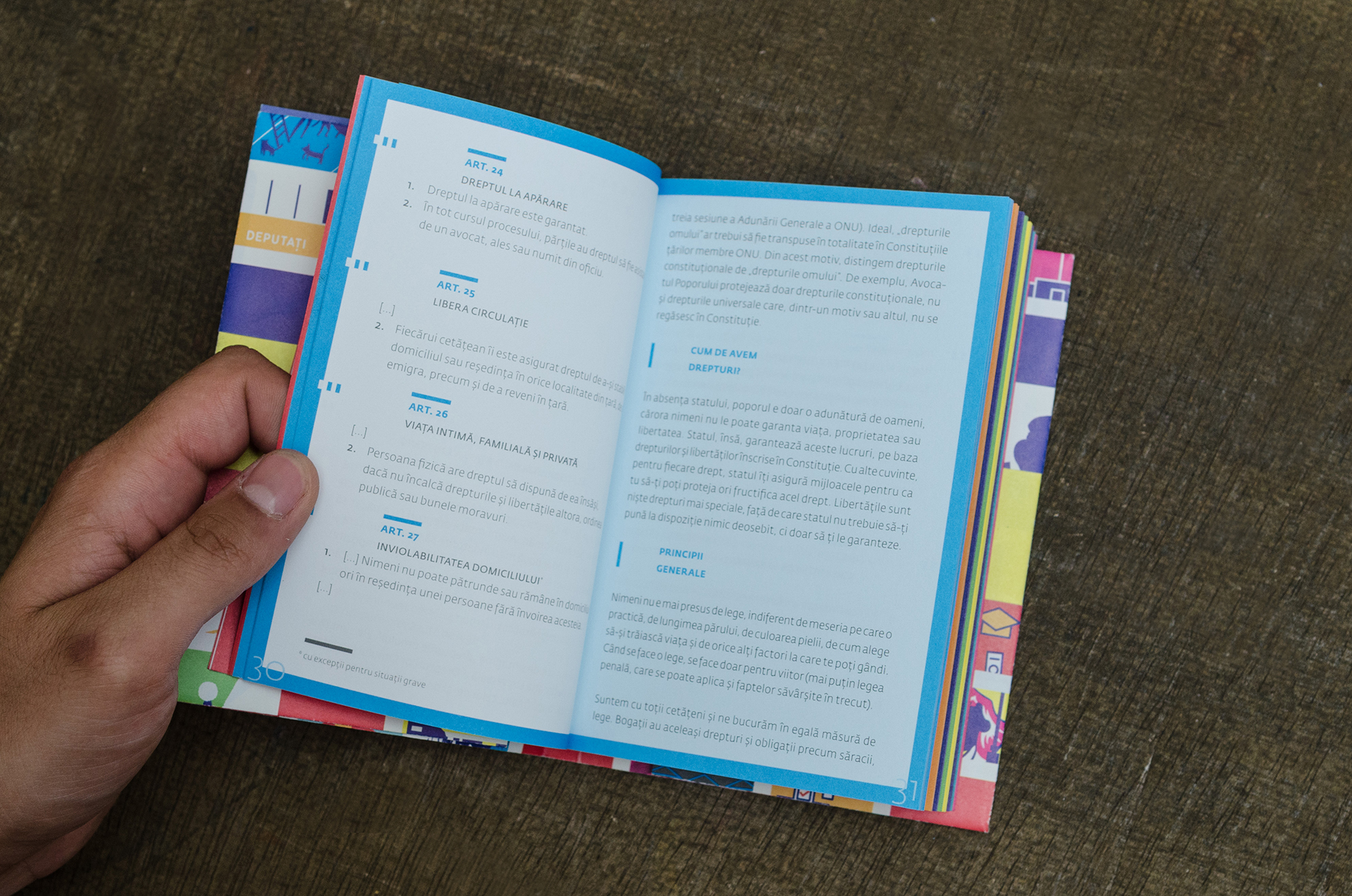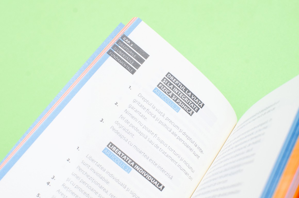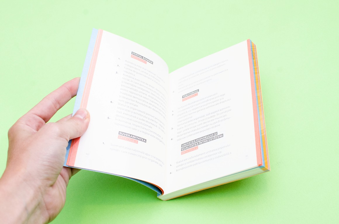 Romanian Constitution is a project initiated by FunkyCitizens and graphically arranged by Grapho_mat. This book needed a new look and so they decided to use a clear layout and soft colors printed carefully by DexterPrint on a special paper.