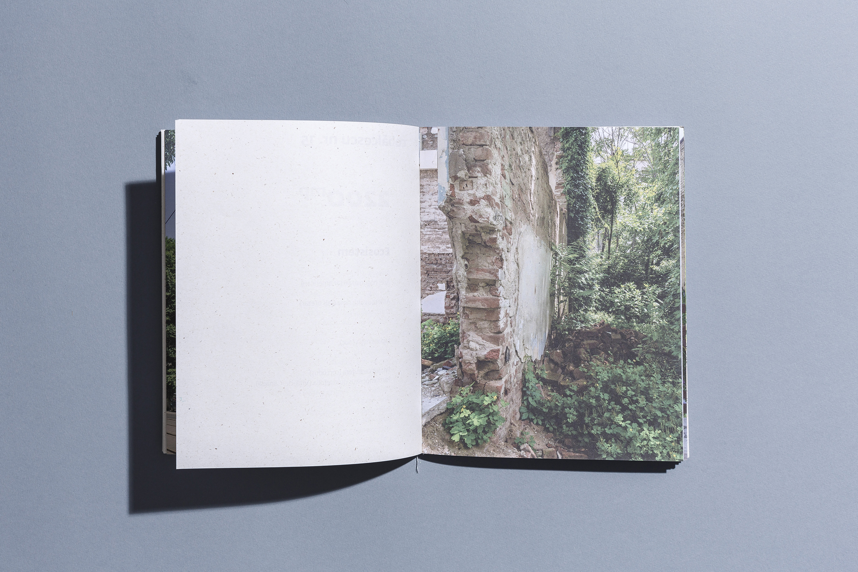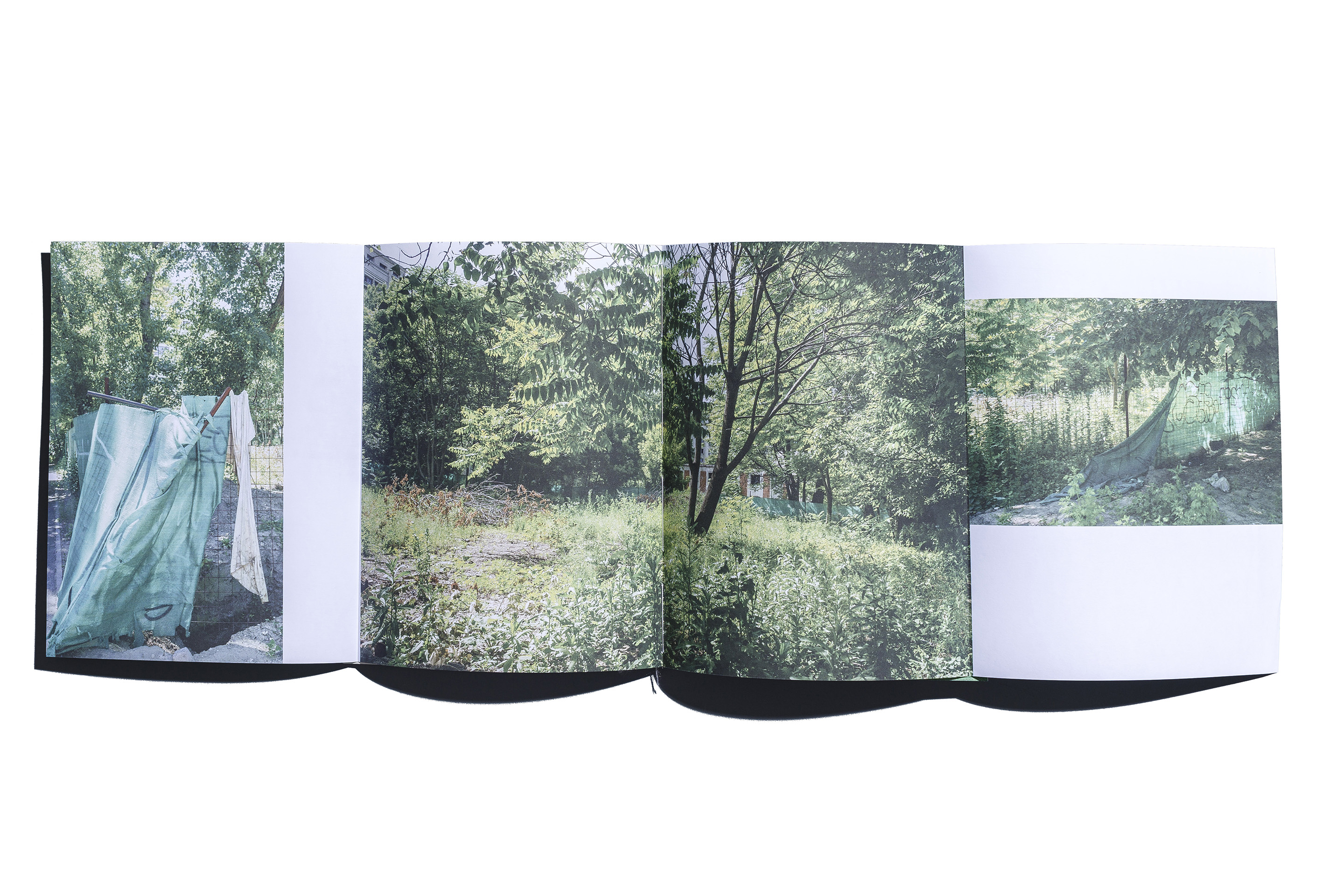 The book is part of the Street Delivery book collection, books binding in the street. Following the SD theme, ”possible gardens”, the book presents a type of garden — frequently seen in Bucharest, that type of unbuilt ground, surrounded by a construction fence on which vegetation has grown in abundance.