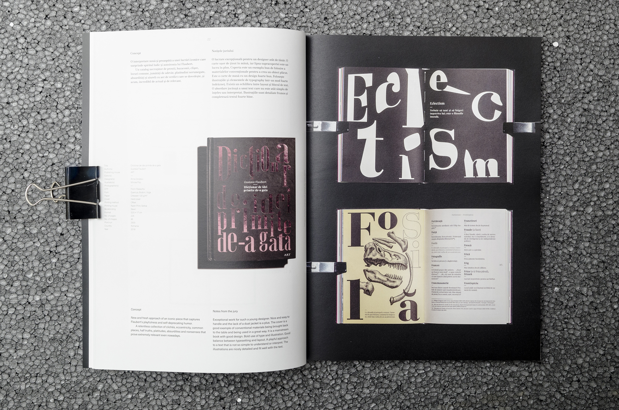 The most beautiful books from Romania competition, now at it's seventh edition is a cultural project that focuses on the visual dimension of the book and has managed to restore the importance of book design in relationship with the reader. The project creates a platform of dialogue and debate for both professionals and the large public. It also creates an opportunity for national and international recognition and exposure for professionals in the editorial field, designers, artists, illustrators and others.