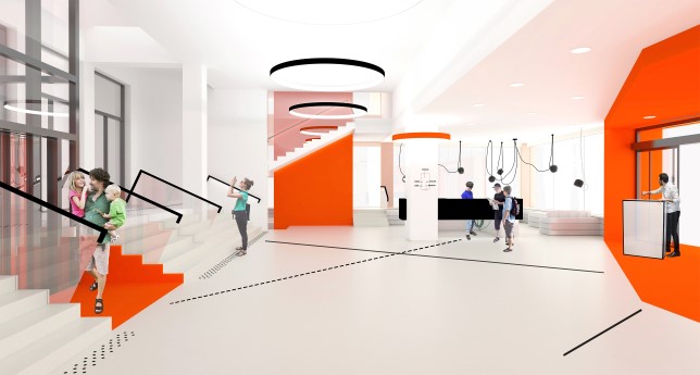 Spațiile mari și luminoase oferă un potențial deosebit, însă accesibilitatea este problematică. Așadar, proiectul propune a rezolva acest aspect important, creând conexiuni fizice și vizuale între spații dedicate activităților culturale, dialogul fiind principalul scop al unei astfel de instituții. Astfel, reconfigurarea interioară abordată vizează spațiile de acces și de legătură: vestibulul și 5 foaiere/holuri situate la diferite nivele devin o succesiune de foaiere.