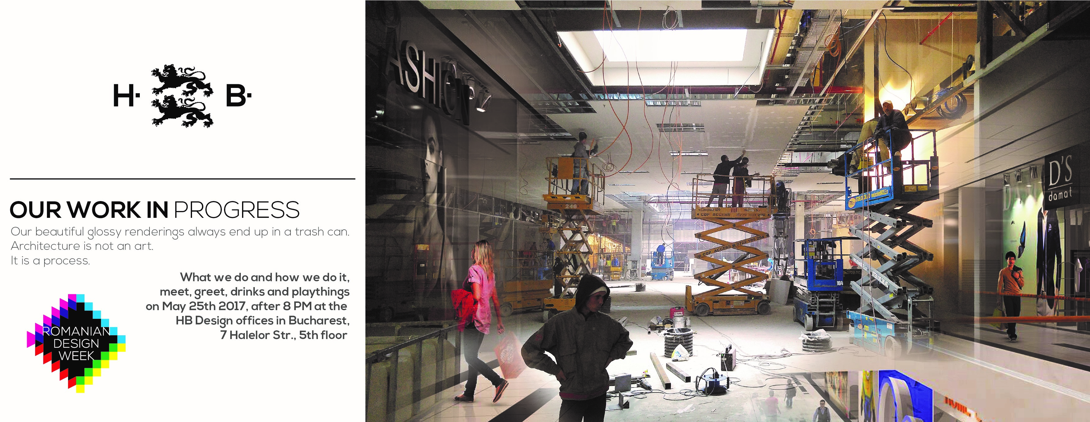 HB Design Team este un birou de arhitecturǎ din Bucureşti condus de Mihai Berceanu şi animat de discipolii sǎi organizaţi în 3 nuclee de lucru. Construim cu pasiune şi experienţǎ centre comerciale de mari dimensiuni. Pentru noi, arhitectura reprezintǎ limbajul intenţiei şi schimbǎrii, mediul şi povestea a ceea ce urmeazǎ mai departe.
