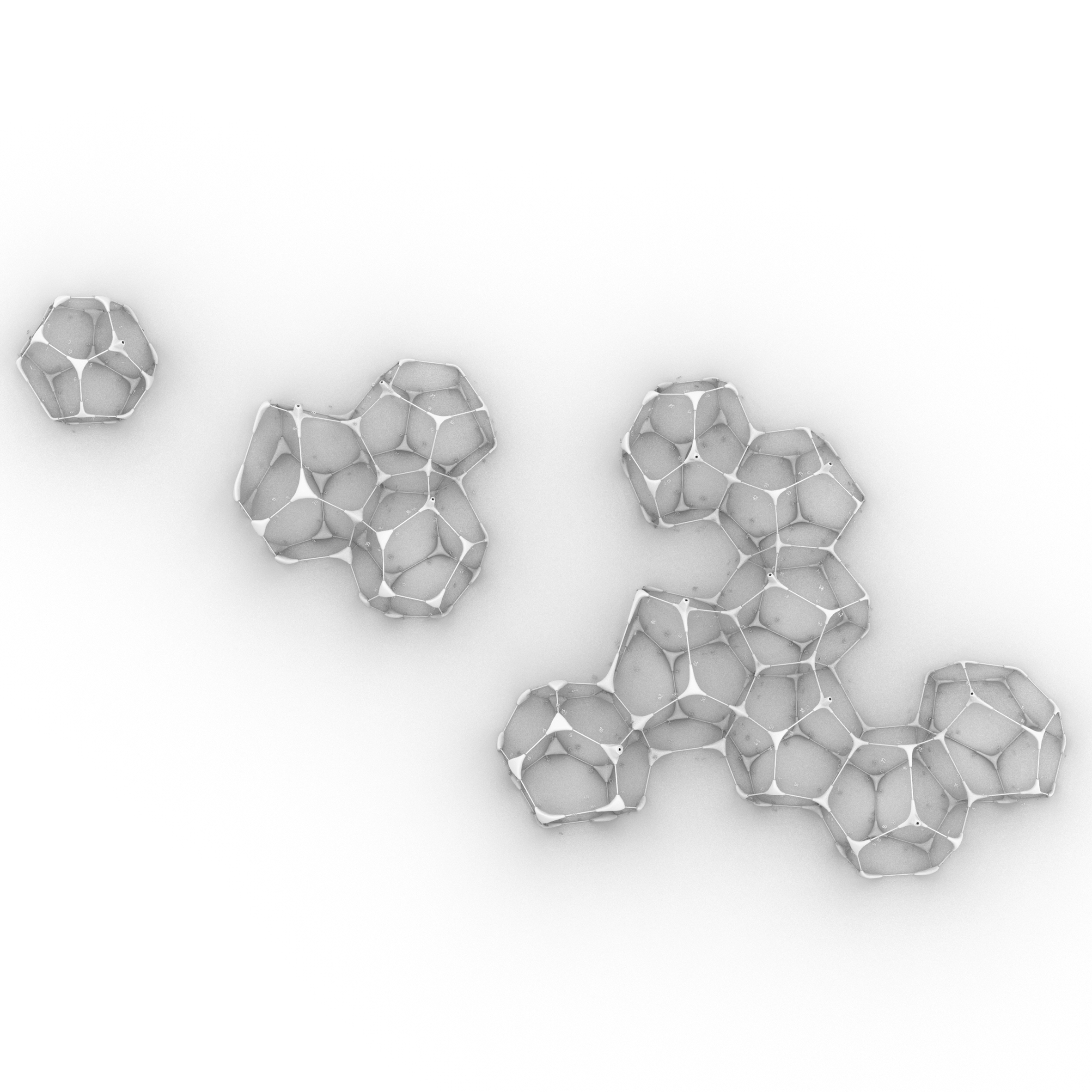 The Aggregate Cells luminaires combines computational design with digital fabrication means and subjective aesthetics. The intent was to explore methods of aggregation of volumetric cells with a regular repetitive geometry that are set free by deformation. Thus, cells lose their uniformity, but maintain geometric relations. By transforming stable and uniform structures, a familiar but altered image is gained, focused on topological deformation and on the new redefined relations between cells.