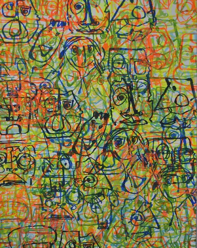 Jocul îţi oferă libertatea de a fi tu însuţi, de a te manifesta liber, spontan, fară constrâgeri. Multitudinea de chipuri expresive, prinse parcă în pânza lucrării, se extrag din suprafață și, printr-un joc doar de ele știut, evadează în spațiu formând propria lor lume viu colorată.