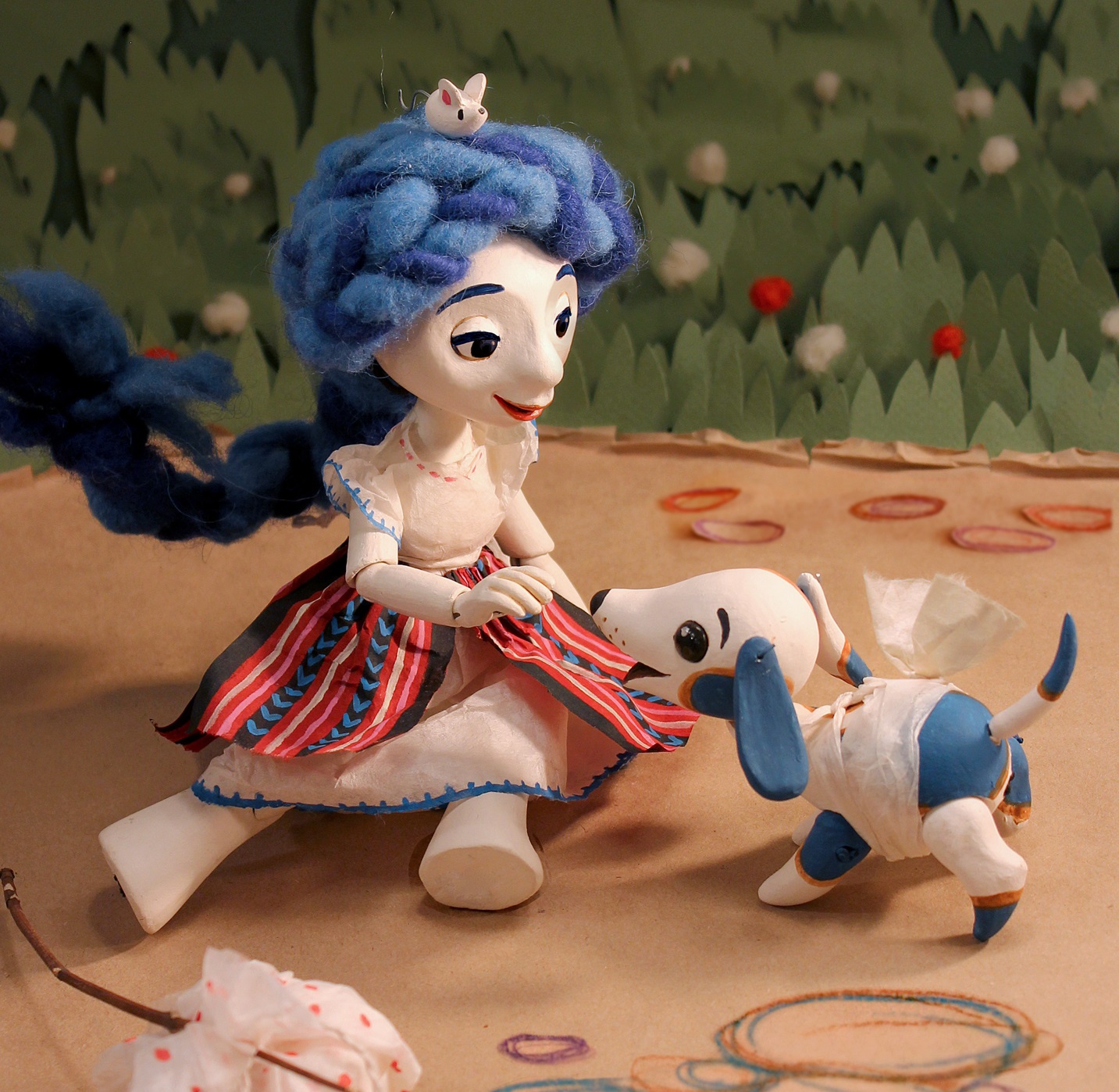 These illustrations of a classic romanian story are made using an special technique. The characters are portrayed by articulated ceramic ball jointed dolls, especially created for this project, and dressed up with clothes inspired from traditional Romanian costumes. The background for each illustration is also three dimentional and handcrafted. Each scene is photographied and digitally processed. The book is part of Pasărea Măiastră Collections, published by Vellant.