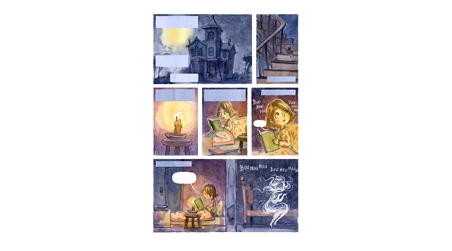 Hôtel Pennington (scenario by Ced Asna, Ed. Makaka, published din France) – is a 96 page graphic novel, for children between 7 and 12 years old. The story tells the adventures of Charlotte, a girl living in a haunted mansion.