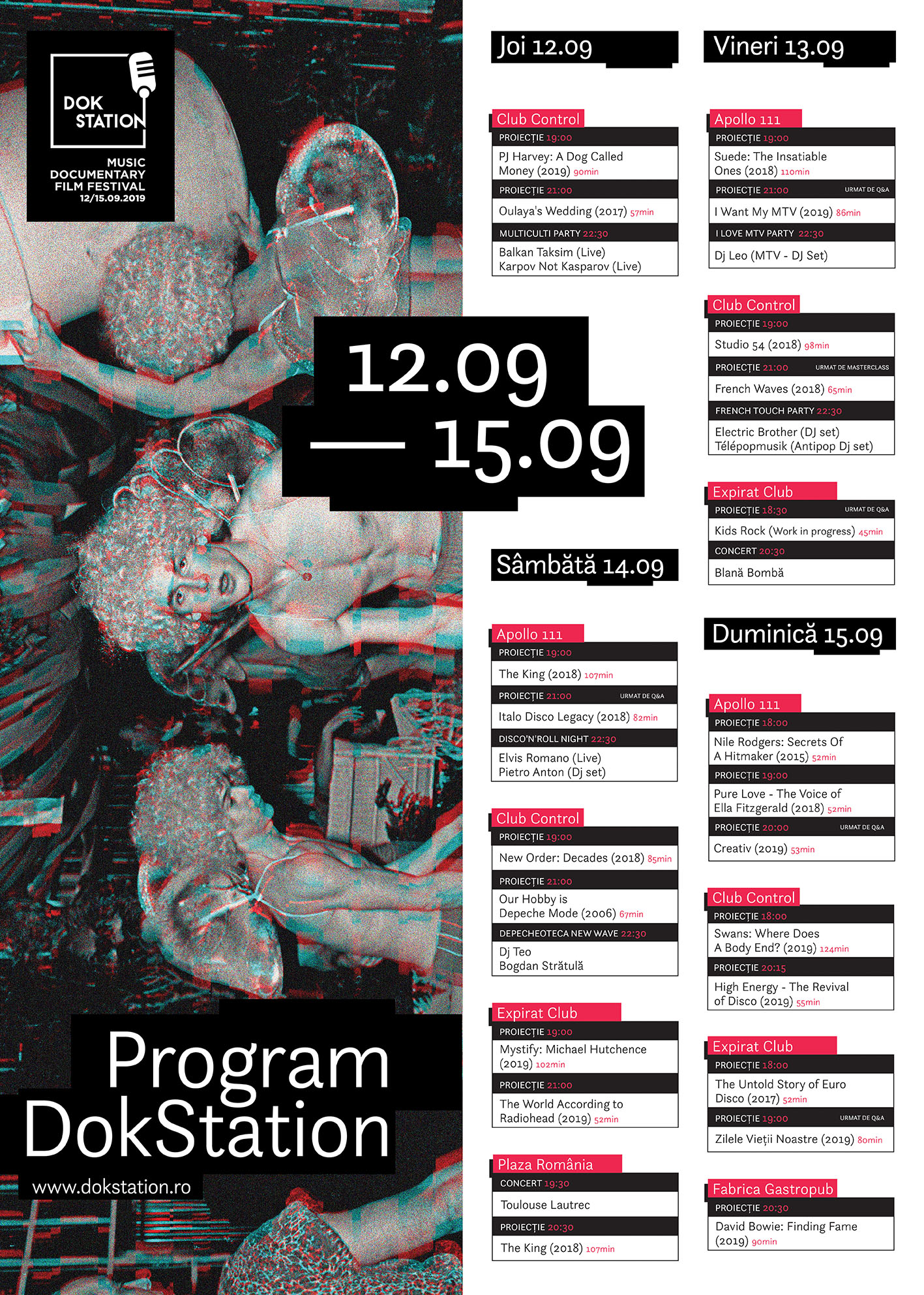 Programul proiecțiilor și evenimentelor conexe este disponibil la www.dokstation.ro/program iar biletele pot fi achiziționate de pe Eventbook.