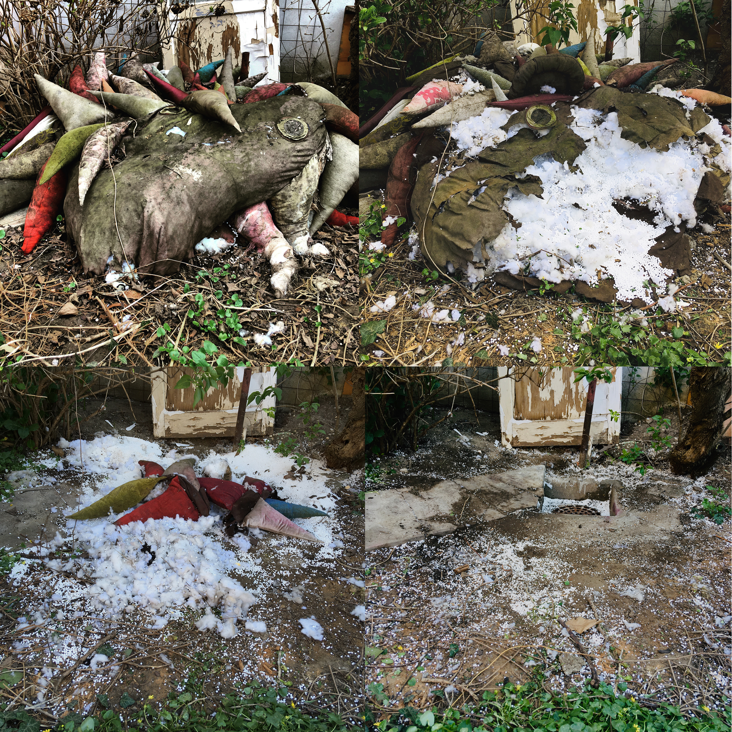 După doi ani de existență a venit vremea să pun punct jurnalului fotografic pe care îl țineam pe pagina personală de Instagram. Intitulat „Decaying Art” #decayingart acest proiect a documentat deteriorarea progresivă a unei lucrări făcute acum zece ani care din cauza unei întâmplări nefericite nu a mai putut fi salvată. Am decis să am o despărțire lentă de acest obiect care îmi era drag și i-am dedicat această serie de imagini. O dată cu începerea perioadei de izolare la domiciliu am realizat că nu mai pot să duc două proiecte în paralel fiindcă din acel moment începusem “Apocalypse Garden” #apocalypsegarden așa că acum o săptămână cu suspine, strănuturi și multe perle de polistiren împrăștiate în cele mai ascunse unghere, am încheiat capitolul #decayingart.