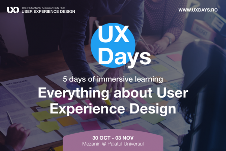 8. UX Days este primul boot camp intensiv de User Experience Design a cărei curriculă a fost construită special pentru piața și industria din România. Organizat de Asociația Română de User Experience Design, evenimentul va avea loc între 30 octombrie și 3 noiembrie. Aici mai multe detalii despre ce presupun cele 5 zile de eveniment, dar și cine vor fi trainerii.
