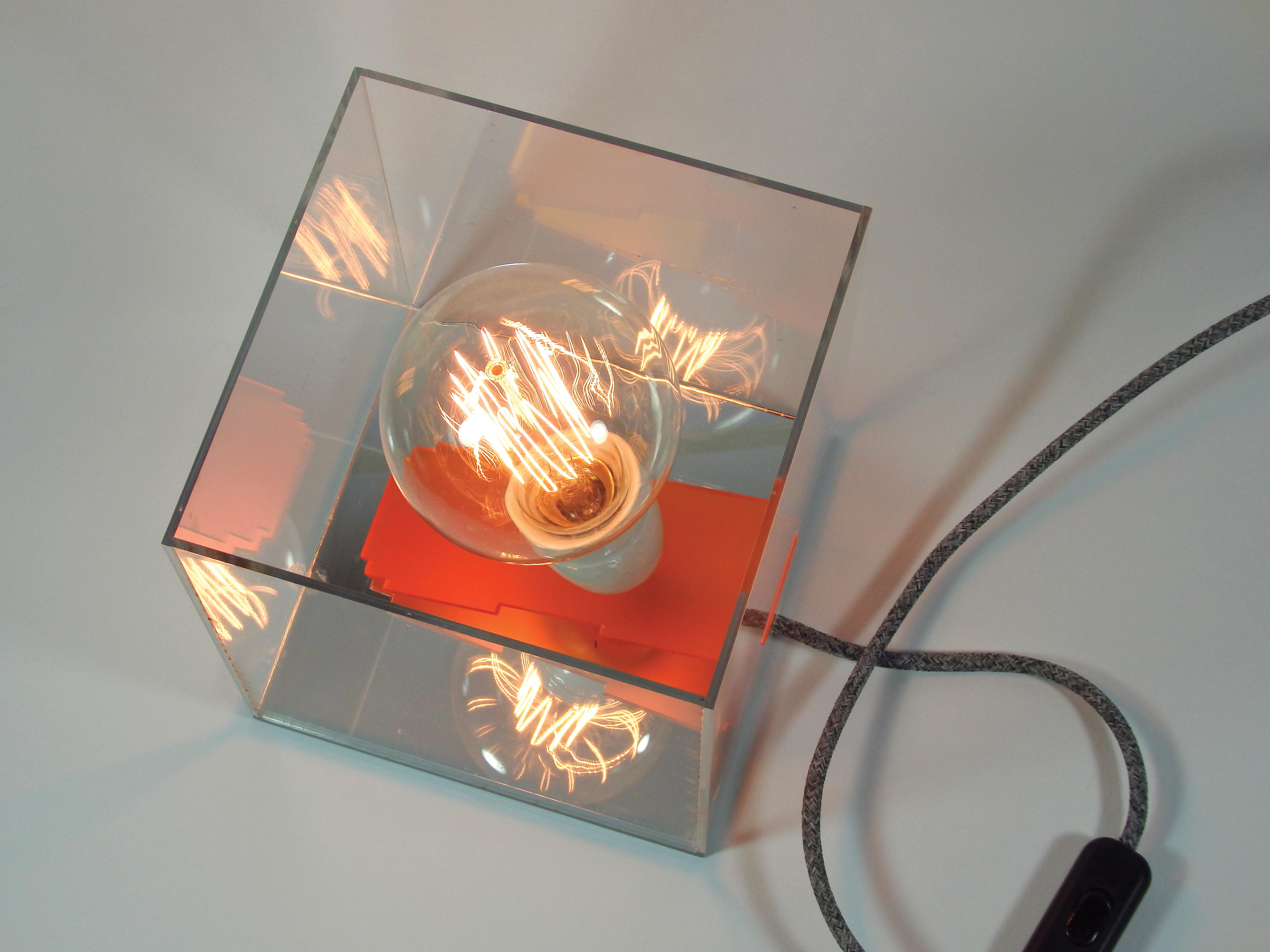 CUBE17 is a lamp that integrates smoothly in most decorations, a very good proportion like a cube that can be used also as a support for books and magazines whit a solid base which gives stability and maximum transparency.