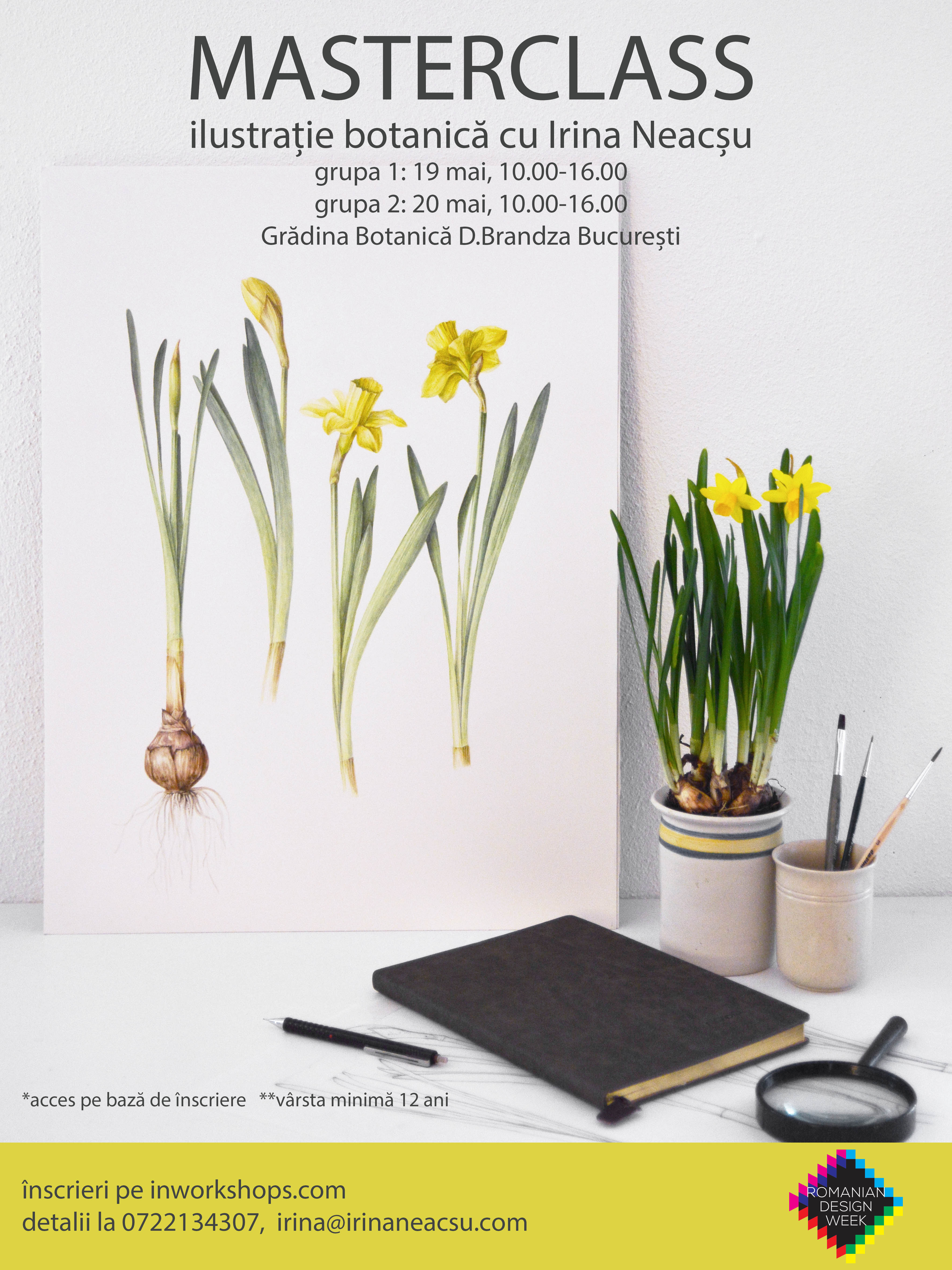 Atelierul se desășoară în paralel cu expoziția de ilustrație botanică Irina Neacșu, ce are loc la Grădina Botanică din București, în perioada 17 mai-10 iunie 2018.