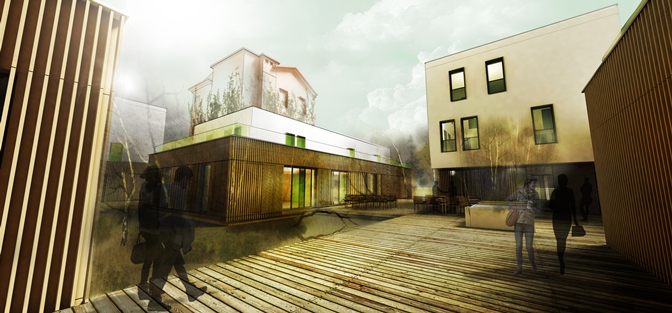 Soluția ideală pentru reintegrarea zonei este refolosirea terenului ocupat de fabrici cu funcțiuni complementare locuirii, care sa readucă zona la viață. În acest sens, propunerea construirii unui centru de reintegrare socială pe lotul unei foste țesătorii, parțial demolată, vine în ajutorul comunității locale. Prin păstrarea clădirii reprezentative a țesătoriei, se menține memoria locului, profitându-se de statutul de reper local pe care această construcție l-a căpătat de-a lungul timpului.