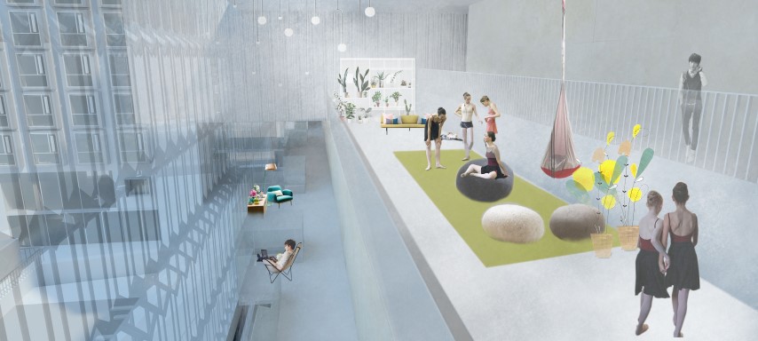 Iulia Popescu este absolventă a Facultăţii de Arhitectură din cadrul U.A.U.I.M. Diploma reprezintă o întrepătrundere a domeniilor sale de interes, arhitectura şi dansul. Ea însăşi practicantă a dansului, cunoaşte îndeaproape aceast domeniu şi aduce o notă profund personală proiectului de diplomă.