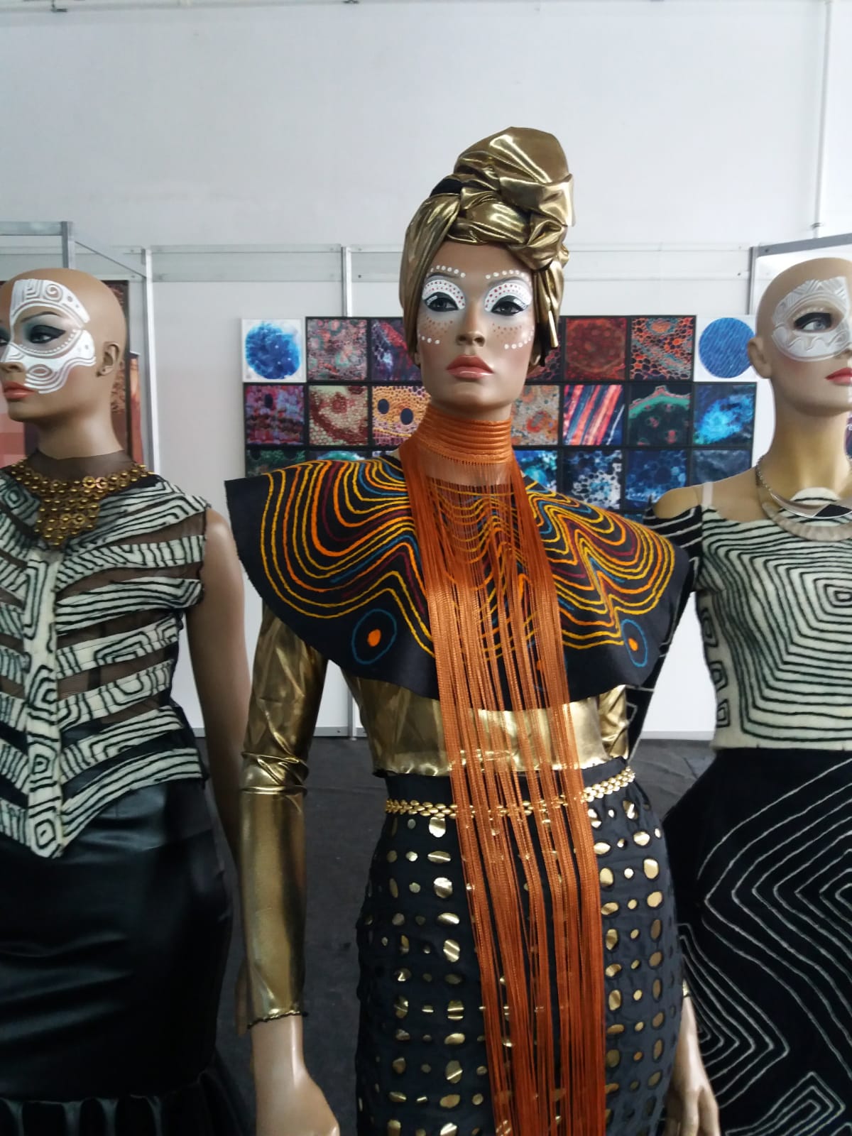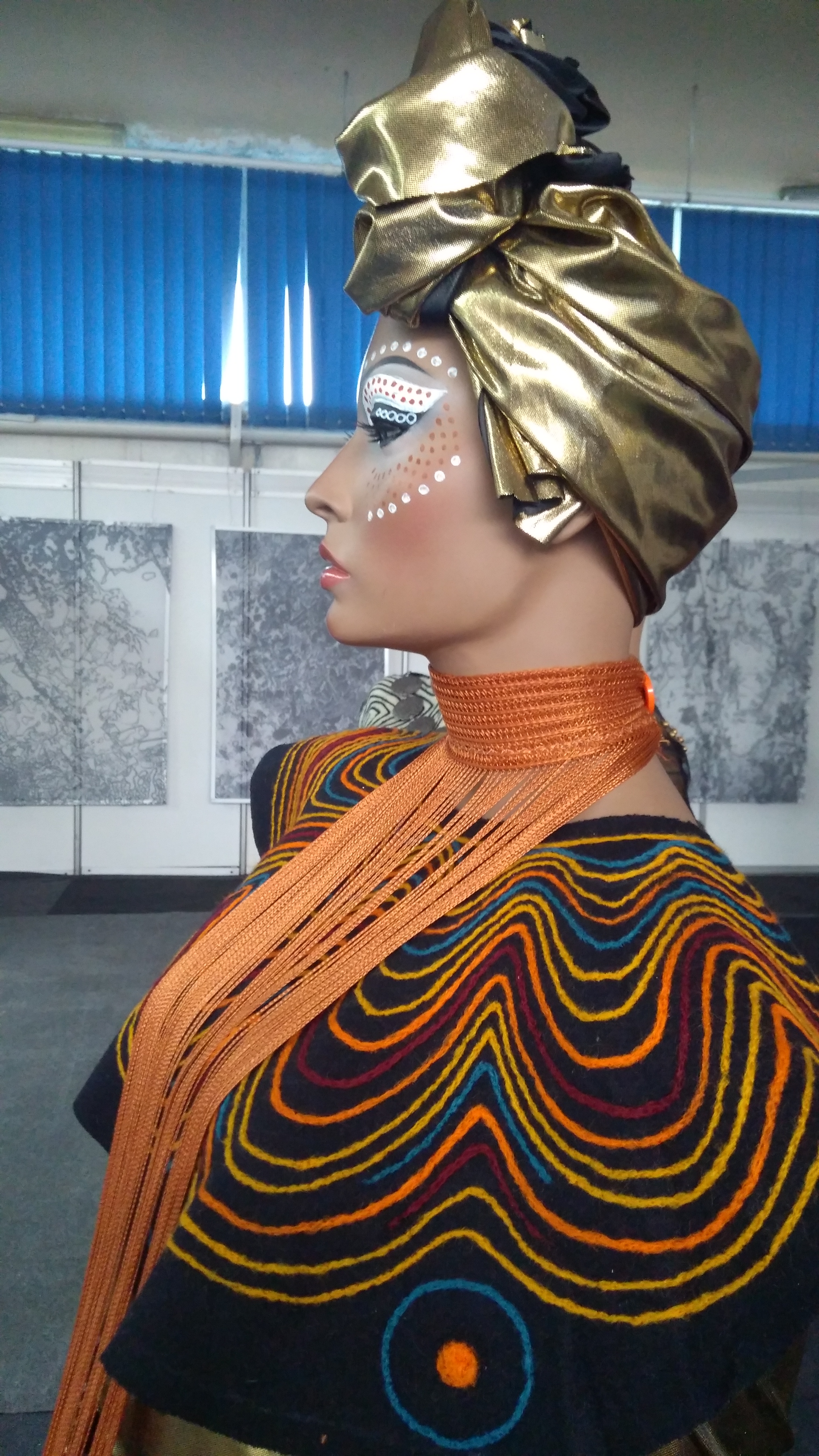 Tema proiectului meu de Licență este oscilația dintre tradiție si actualitate in Africa de Sud mai exact influența africană în costumul textil. Am ales sa creez cinci costume care sa ilustreze frumusețea, diversitatea și importanța tradiției unui trib African. Proiectul meu are amprenta artei africane, prin modelele geometrice, culoare, decor si materialitate. Tehnica principala pe care am folosit-o este tehnica impaslirii, am folosit ca material predominant lana, pe care am impaslit-o cu apa iar modelel le-am impaslit cu acul. Am fost fascinată de Africa, datorită percepției despre viață a acestor oameni. Ei sunt într-o continuă celebrare a vieții și a morții. Obiceiul de a se picta pe corp cu acele modele abstracte spectaculoase de fiecare dată când este un eveniment important, reprezintă o transformare a fiintei. Acese modelele simbolice, liniaturile și măștile care sunt desenate pe corpul uman, sunt defapt o oglindă a sufletului.