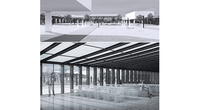 Piața se definește prin inserarea unui nou obiect arhitectural - un pavilion de educație culturală, care va găzdui o serie de funcțiuni publice: expoziție și sală de concerte si evenimente, restaurant, librărie, cafenea, ceainarie etc.